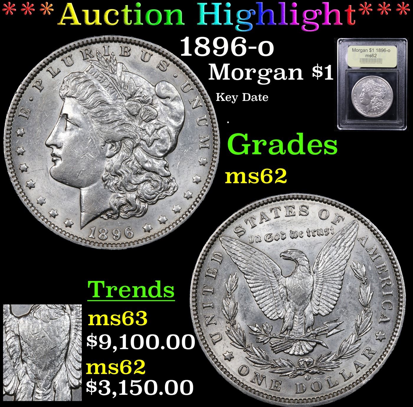 ***Auction Highlight*** 1896-o Morgan Dollar $1 Graded Select Unc By USCG. Up for Auction is a Key Date 1896-o. Silvery and untoned over minimally abraded surfaces, this appealing coin is worthy of a strong bid. A true condition rarity among Morgan dollars, the 1896-O is readily obtainable in worn condition yet scarce to rare in all Mint State grades. When we further consider that most Uncirculated survivors of this 4,900,000-piece issue are poorly struck with inferior luster, the present offering is sure to catch the eye of the discerning Morgan dollar collector. A Corey's Pick, Bid to Win, Don't let it get Away, you might not find its equal Coin. I give this coin my highest recommendation