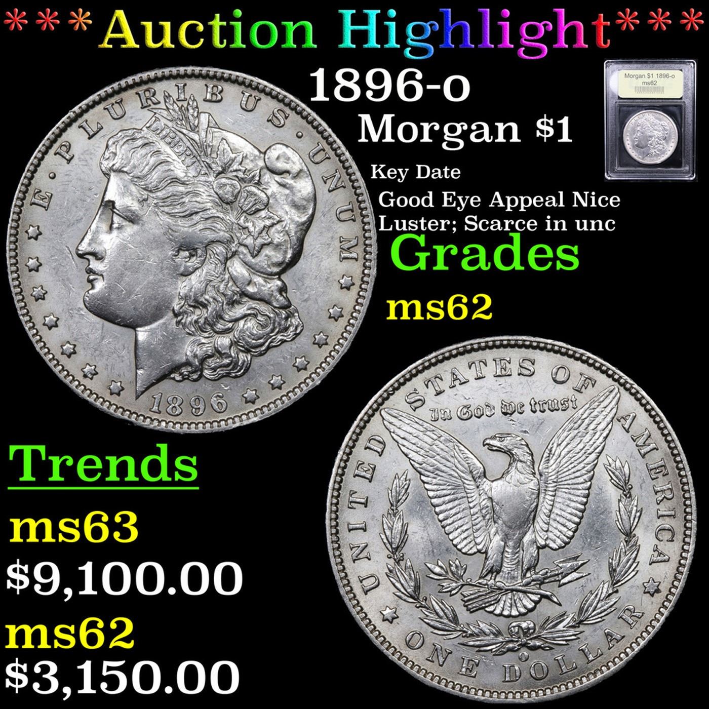 ***Auction Highlight*** 1896-o Morgan Dollar $1 Graded Select Unc By USCG. Up for Auction is a Key Date 1896-o. Silvery and untoned over minimally abraded surfaces, this appealing coin is worthy of a strong bid. A true condition rarity among Morgan dollars, the 1896-O is readily obtainable in worn condition yet scarce to rare in all Mint State grades. When we further consider that most Uncirculated survivors of this 4,900,000-piece issue are poorly struck with inferior luster, the present offering is sure to catch the eye of the discerning Morgan dollar collector. A Corey's Pick, Bid to Win, Don't let it get Away, you might not find its equal Coin. I give this coin my highest recommendation