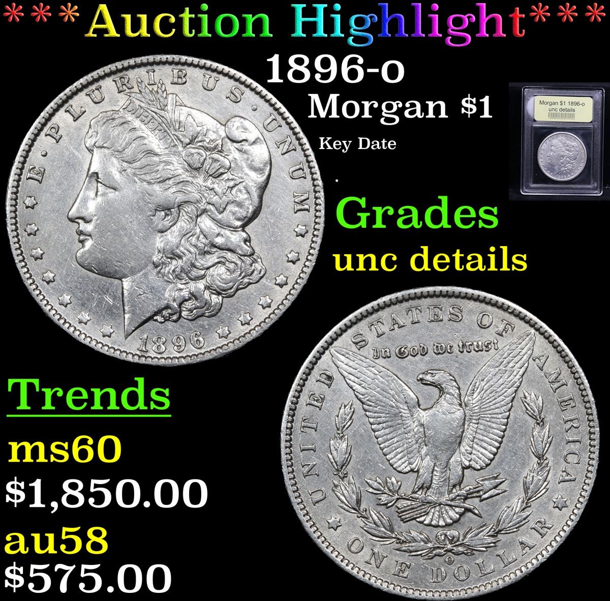 ***Auction Highlight*** 1896-o Key Date . Morgan Dollar $1 Graded Unc Details By USCG.