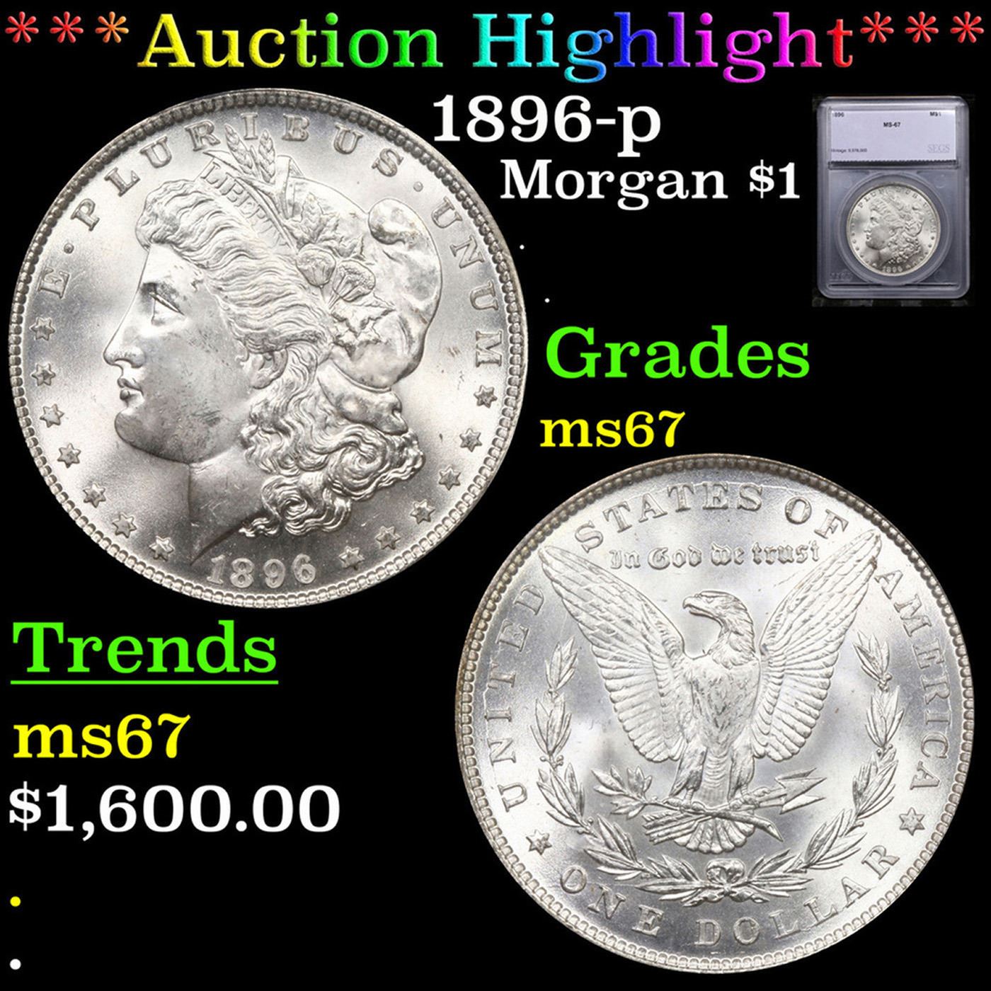 ***Auction Highlight*** 1896-p Morgan Dollar $1 Graded ms67 BY SEGS. A Corey's Pick, Bid to Win, Don't let it get Away Coin