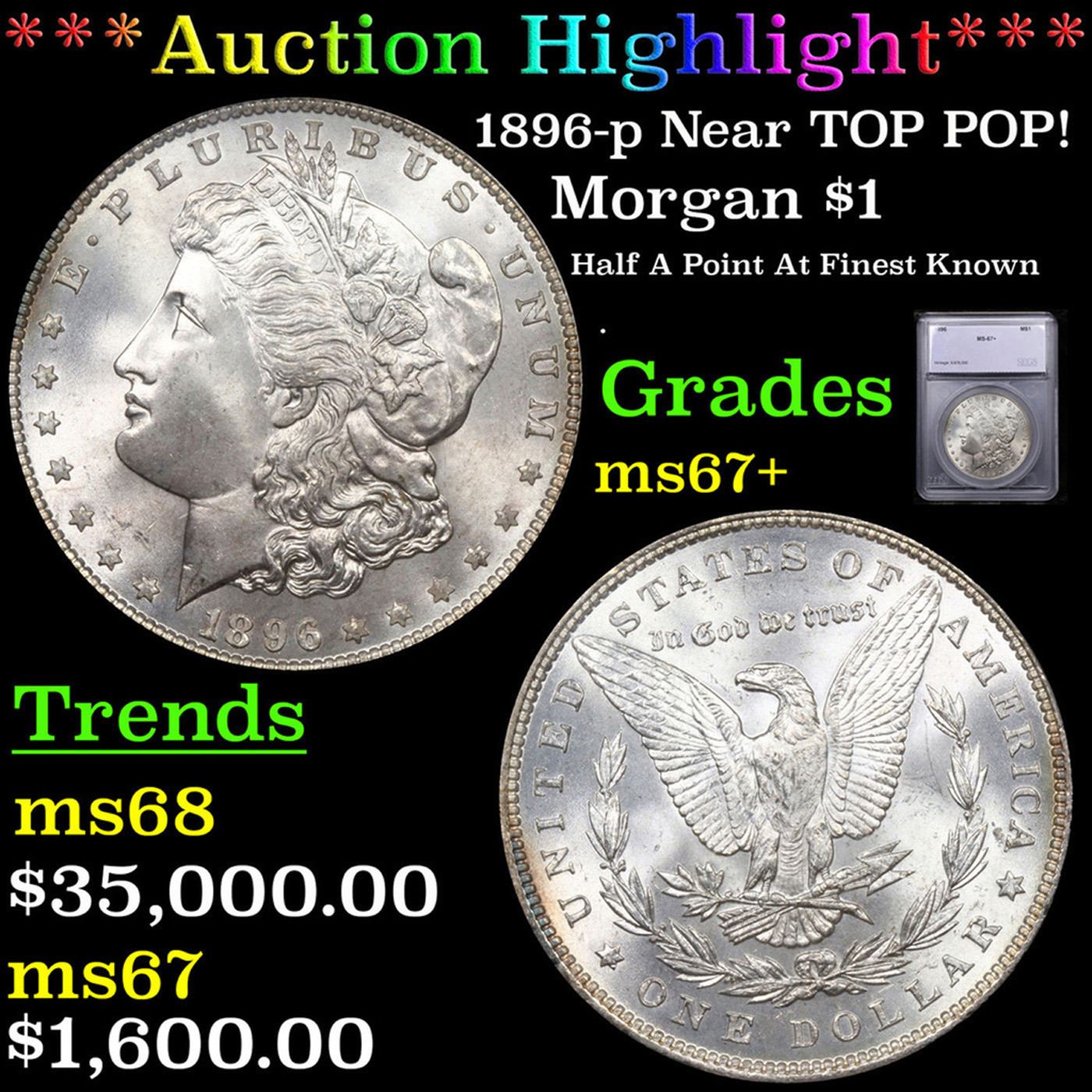 ***Auction Highlight*** 1896-p Morgan Dollar Near TOP POP! $1 Graded ms67+ BY SEGS (fc)