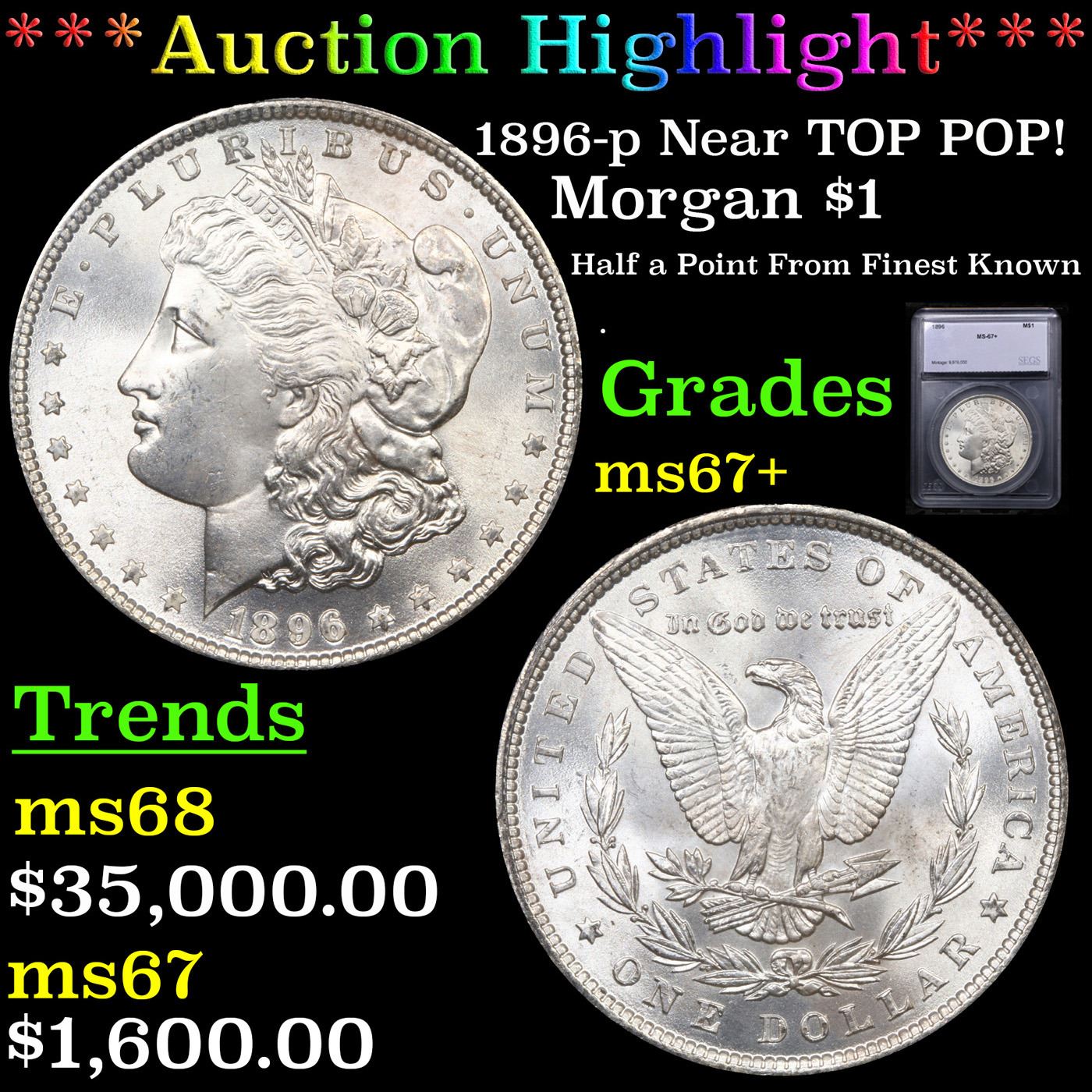 ***Auction Highlight*** 1896-p Near TOP POP! Morgan Dollar $1 Graded ms67+ By SEGS.         A Corey's Pick, Bid to Win, Don't let it get Away, you might not find its equal Coin.  I give this coin my highest recommendation