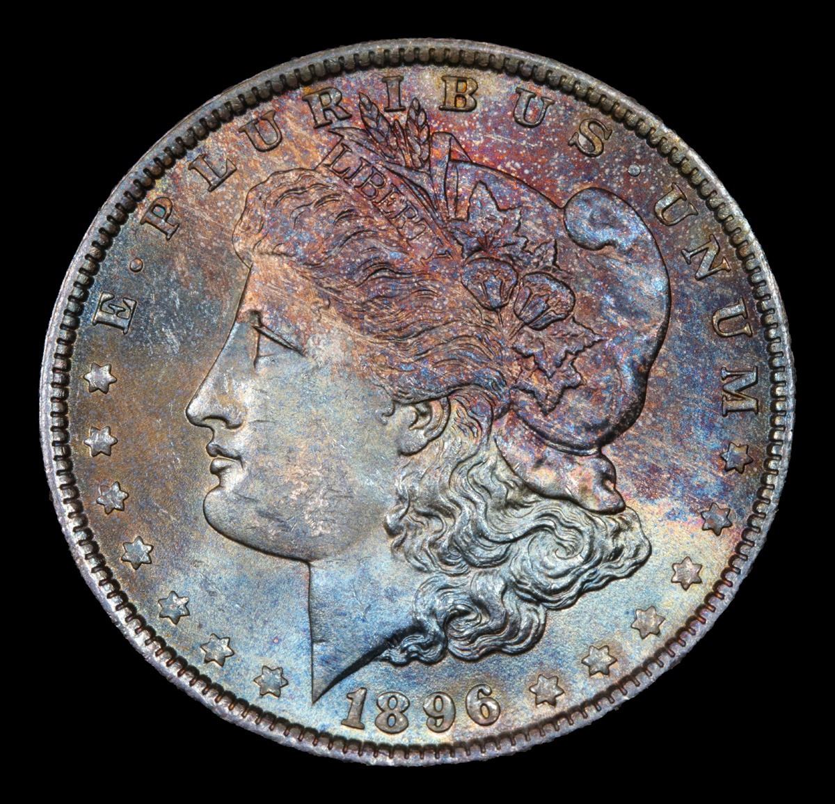 ***Auction Highlight*** 1896-p Rainbow Toned Morgan Dollar $1 Graded GEM Unc BY USCG (fc)