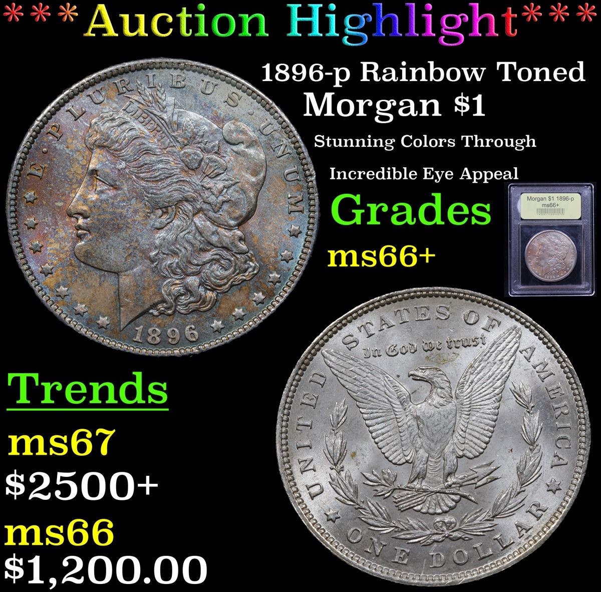***Auction Highlight*** 1896-p Rainbow Toned Morgan Dollar $1 Graded GEM++ Unc By USCG.         A Corey's Pick, Bid to Win, Don't let it get Away, you might not find its equal Coin.  I give this coin my highest recommendation