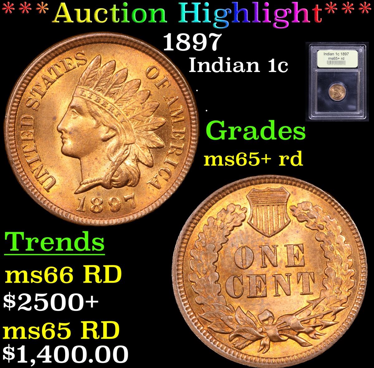 ***Auction Highlight*** 1897 . . Indian Cent 1c Graded Gem+ Unc RD By USCG. A Corey's Pick, Bid to Win, Don't let it get Away, you might not find its equal Coin