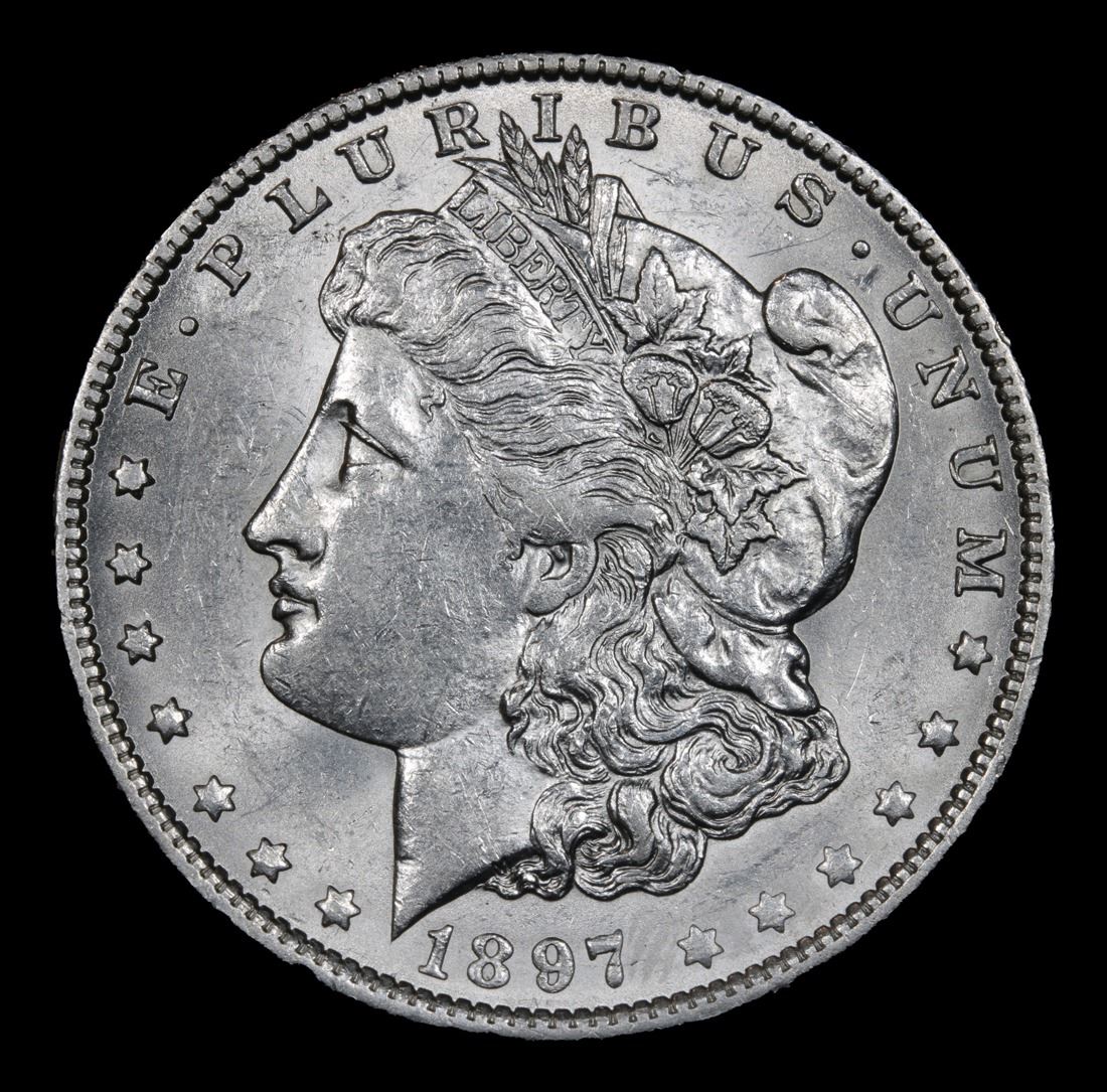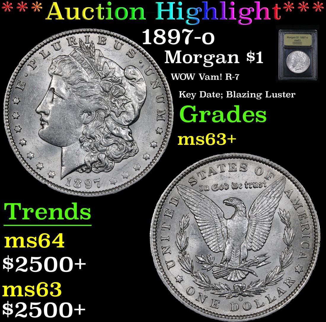 ***Auction Highlight*** 1897-o Morgan Dollar $1 Graded Select+ Unc By USCG. WOW Vam! R-7 Key Date; Blazing Luster VAM-6B Near Date, High O Tilted Right, Die Breaks Lower Reverse. WOW! R-7A Corey's Pick, Bid to Win Coin