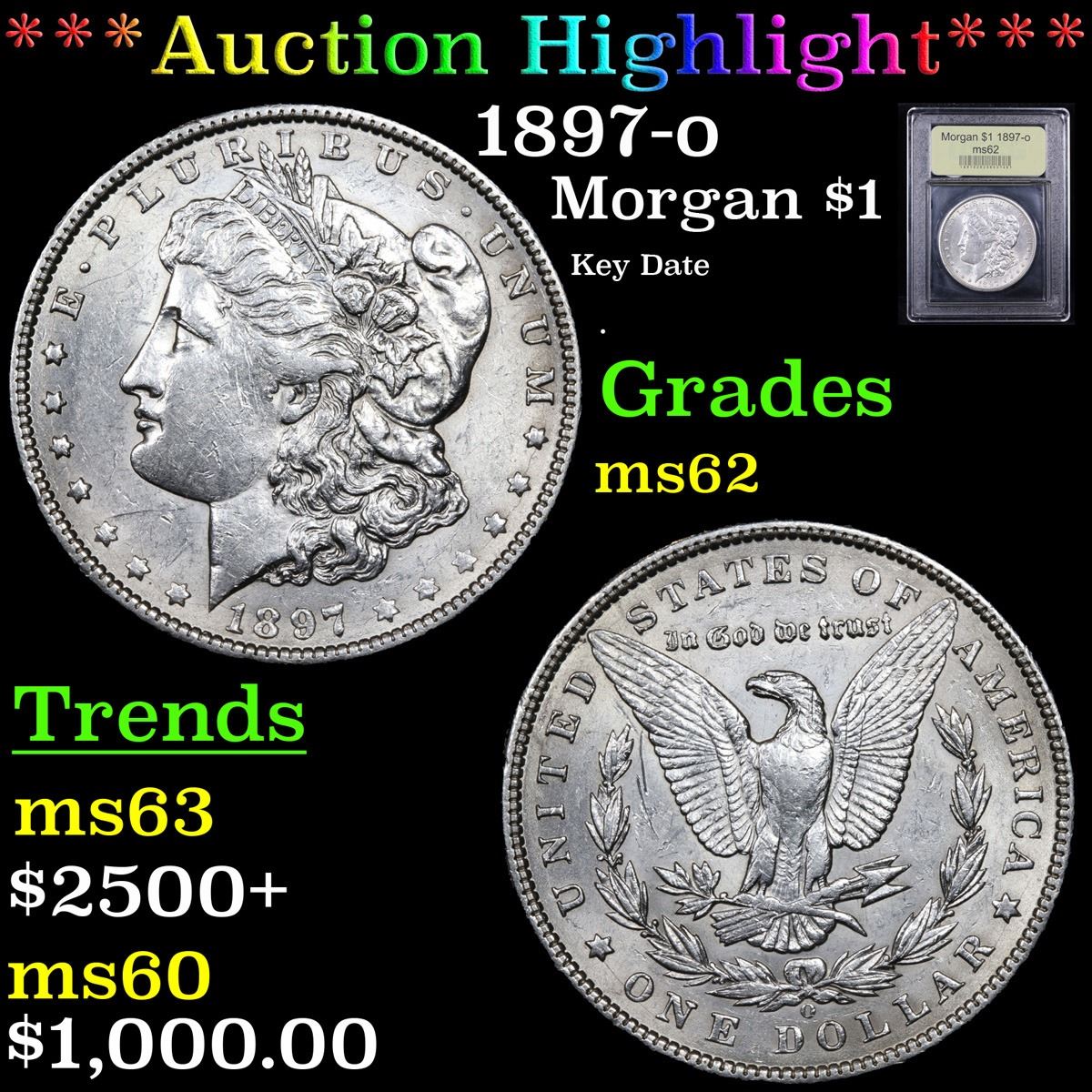 ***Auction Highlight*** 1897-o Key Date . Morgan Dollar $1 Graded Select Unc By USCG. A Corey's Pick, Bid to Win, Don't let it get Away, you might not find its equal Coin