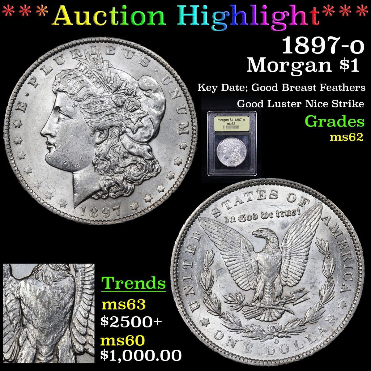***Auction Highlight*** 1897-o Key Date; Good Breast Feathers Good Luster Nice Strike Morgan Dollar $1 Graded Select Unc By USCG. A Corey's Pick, Bid to Win, Don't let it get Away Coin