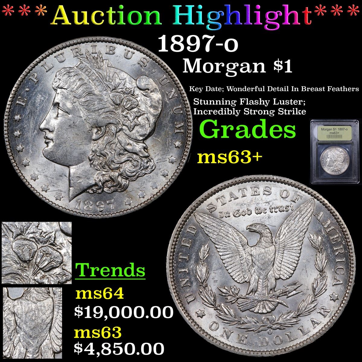 ***Auction Highlight*** 1897-o Morgan Dollar $1 Graded Select+ Unc By USCG. Stunning Flashy Luster. Incredibly strong Strike, especially for a New Orleans struck Morgan. Breast Feathers with wonderful detail. Strong Luster. A really great coin, a coin worth owning! A Corey's Pick, Bid to Win, Don't let it get Away, you might not find its equal Coin. I give this coin my highest recommendation