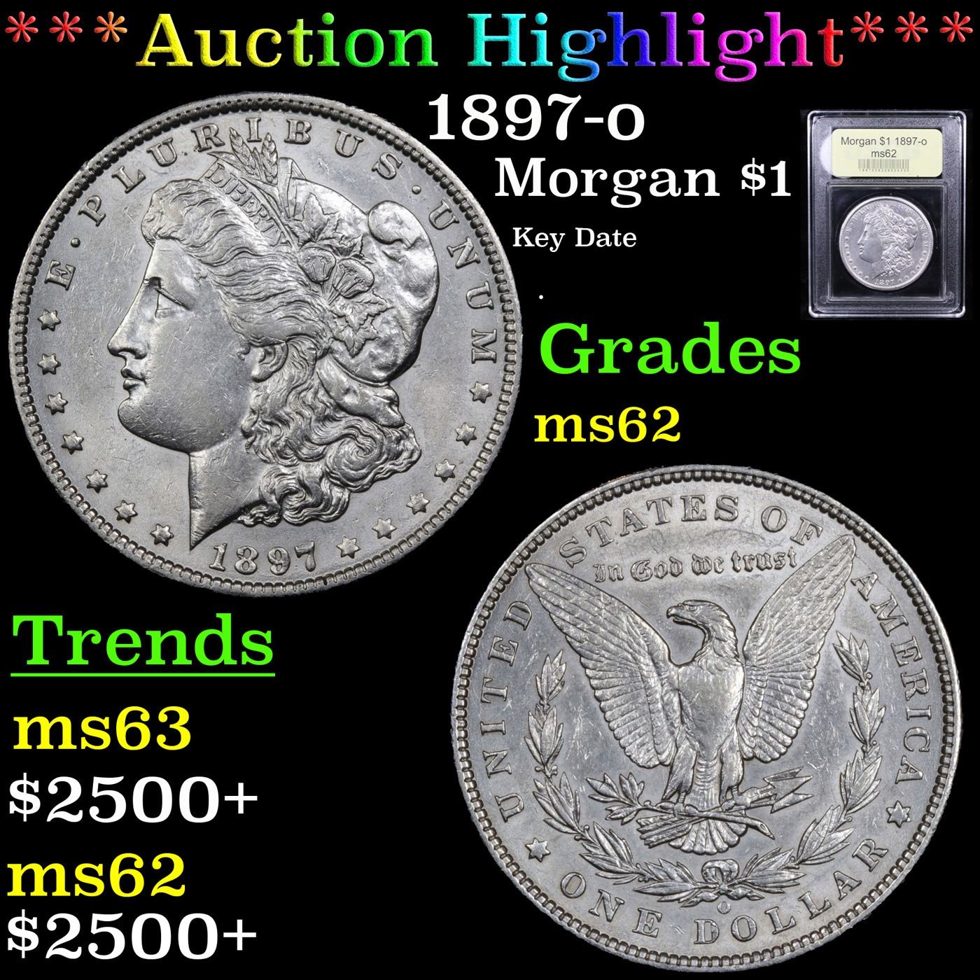 ***Auction Highlight*** 1897-o Morgan Dollar $1 Graded Select Unc By USCG. Up for Auction is a Key Date 1897-o. Silvery and untoned over minimally abraded surfaces, this appealing coin is worthy of a strong bid. A true condition rarity among Morgan dollars, the 1897-O is readily obtainable in worn condition yet scarce to rare in all Mint State grades. When we further consider that most Uncirculated survivors of this 4,004,000-piece issue are poorly struck with inferior luster, the present offering is sure to catch the eye of the discerning Morgan dollar collector. A Corey's Pick, Bid to Win, Don't let it get Away, you might not find its equal Coin