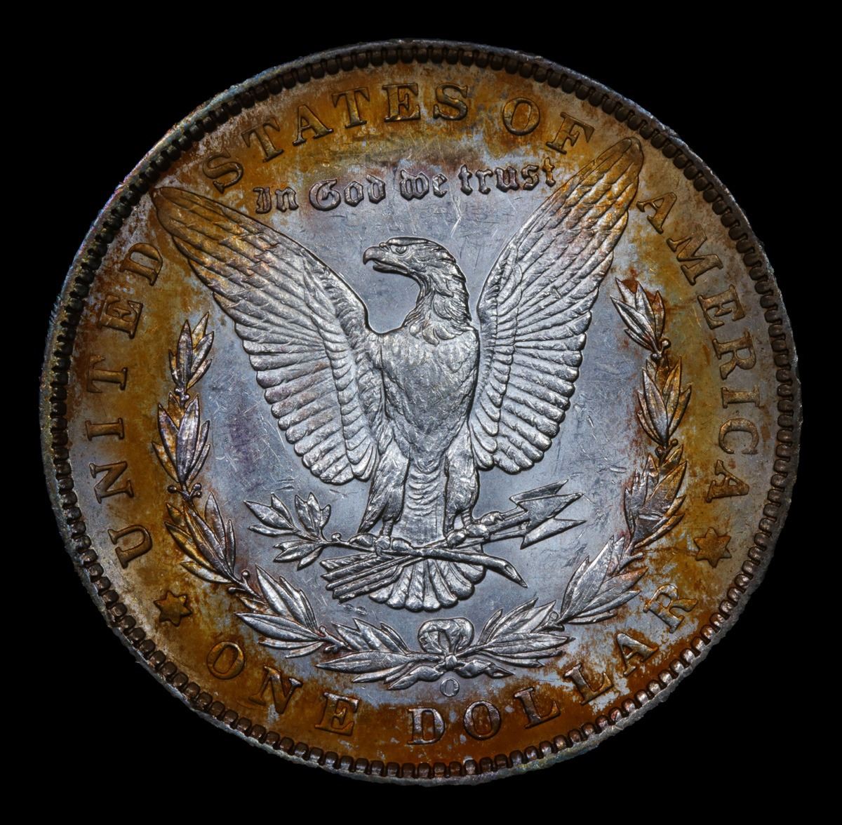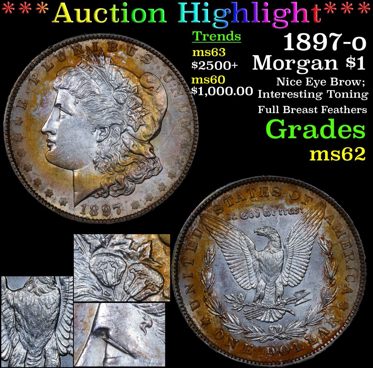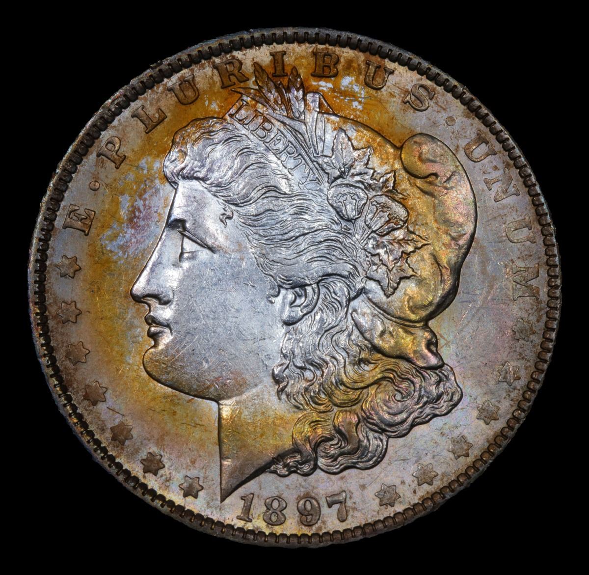 ***Auction Highlight*** 1897-o Nice Eye Brow; Interesting Toning Full Breast Feathers Morgan Dollar $1 Grades Select Unc.