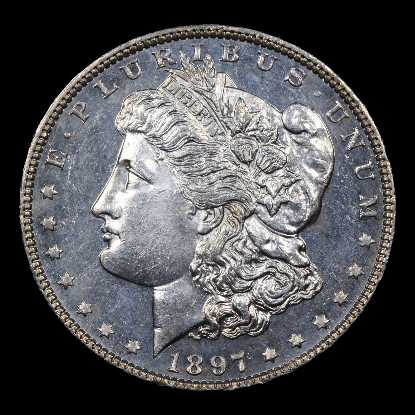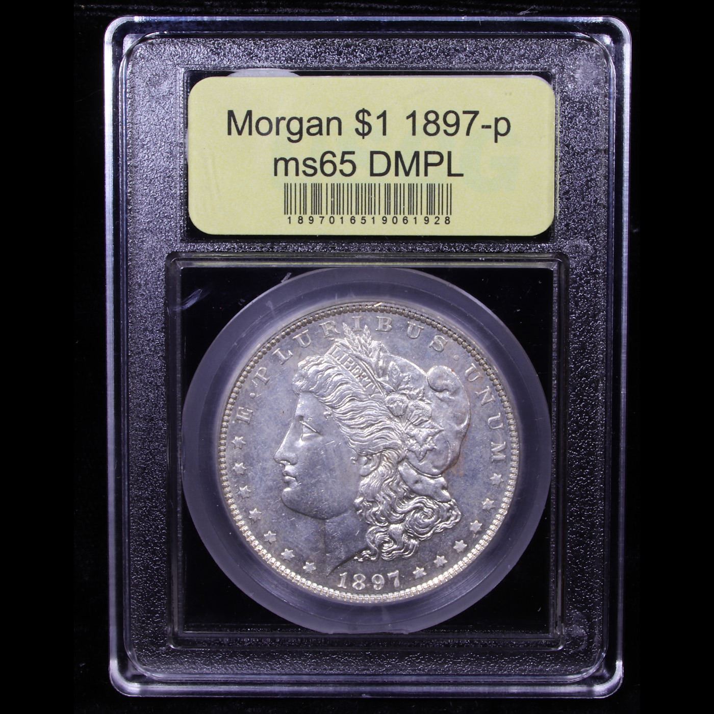 ***Auction Highlight*** 1897-p Morgan Dollar $1 Graded GEM Unc DMPL By USCG. The interplay between deep mirror-field luster and the frostiness of the well-struck devices is key to this Gem's eye appeal. Light splashes of milky patina are present mainly around the margins. This Philadelphia issue is seen seldom with Deep Mirror Proof like surfaces, particularly in better Mint State grades. A Corey's Pick, Bid to Win, Don't let it get Away Coin