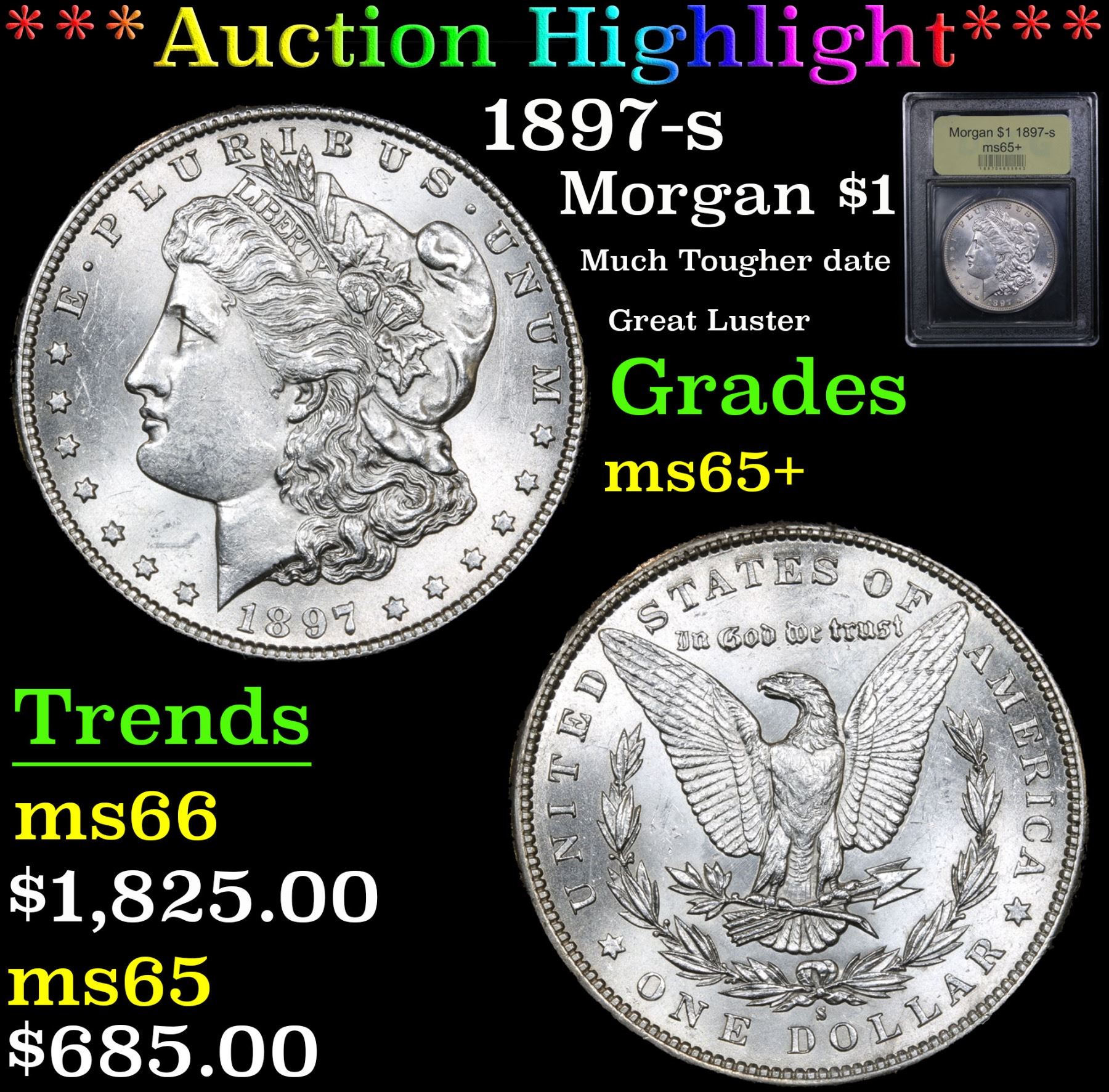 ***Auction Highlight*** 1897-s Morgan Dollar $1 Graded GEM+ Unc By USCG. Much Tougher date; Great Luster A Corey's Pick, Bid to Win Coin