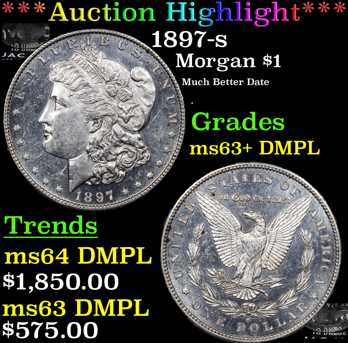 ***Auction Highlight*** 1897-s Morgan Dollar $1 Graded Select Unc+ DMPL BY USCG.