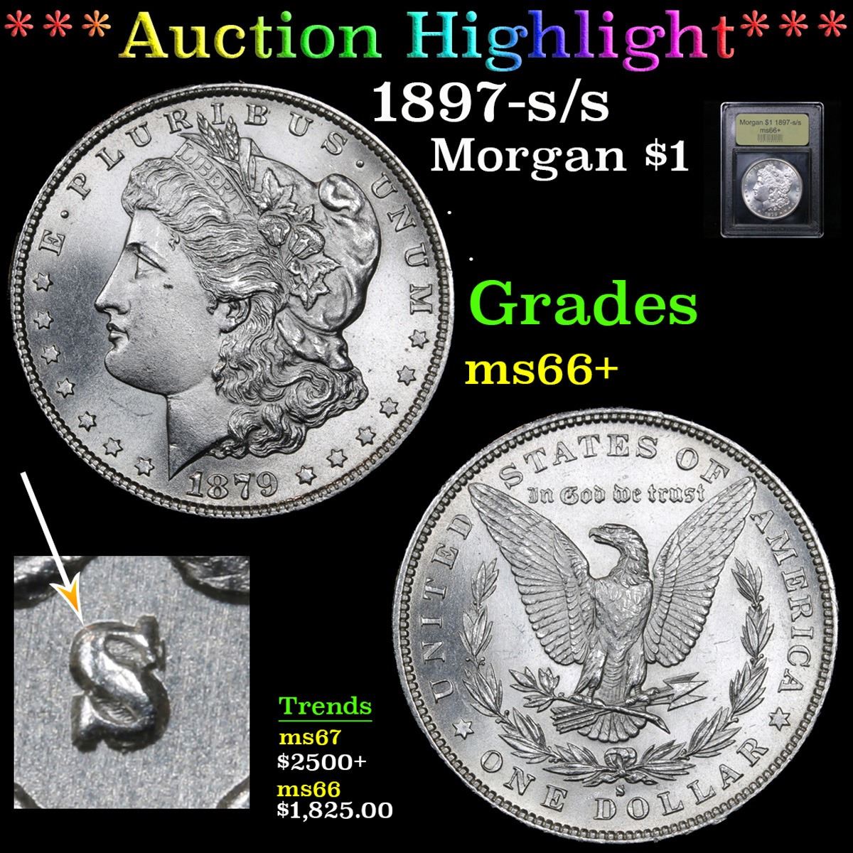 ***Auction Highlight*** 1897-s/s . . Morgan Dollar $1 Graded GEM++ Unc By USCG. A Corey's Pick, Bid to Win, Don't let it get Away, you might not find its equal Coin. I give this coin my highest recommendation