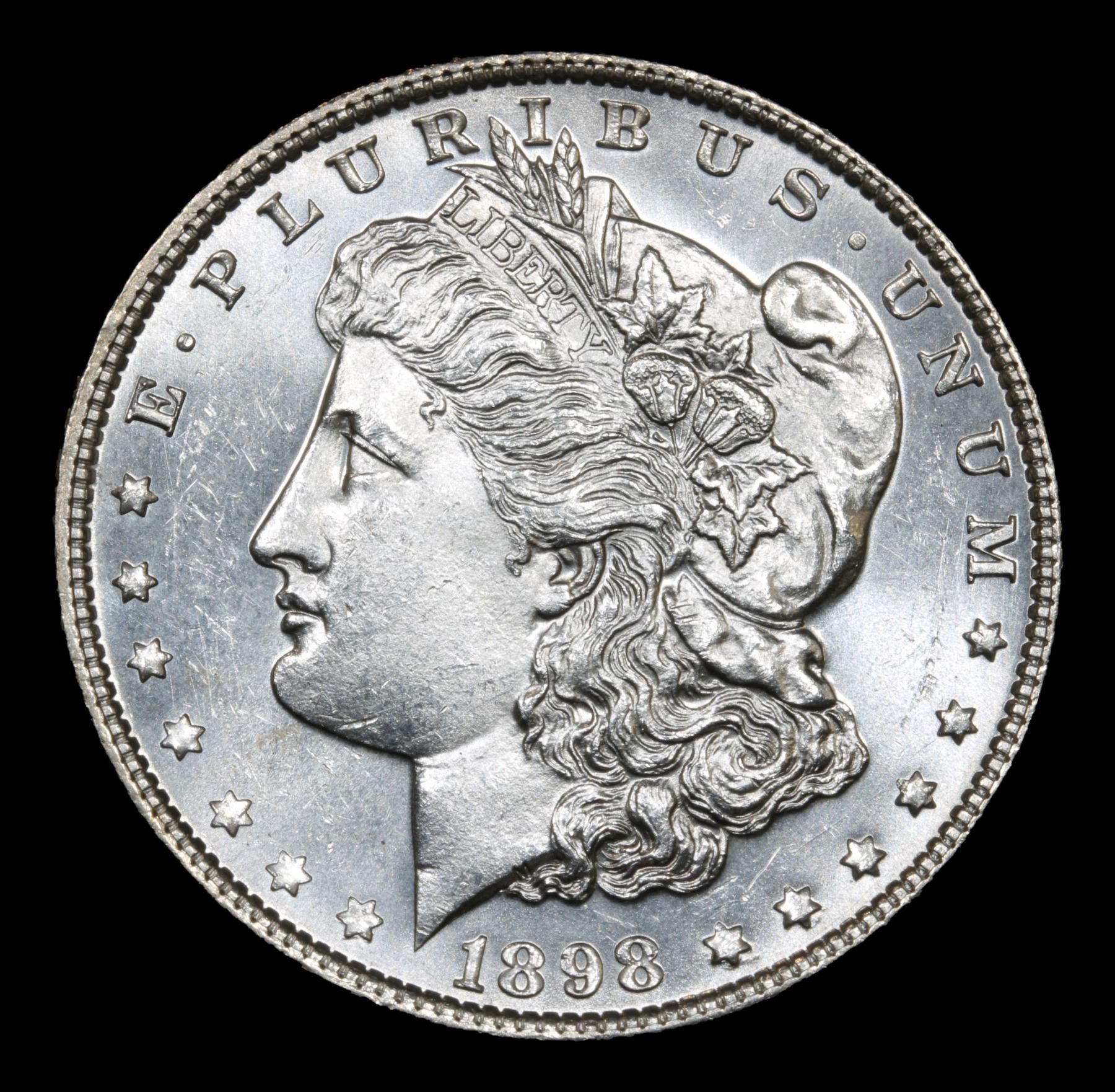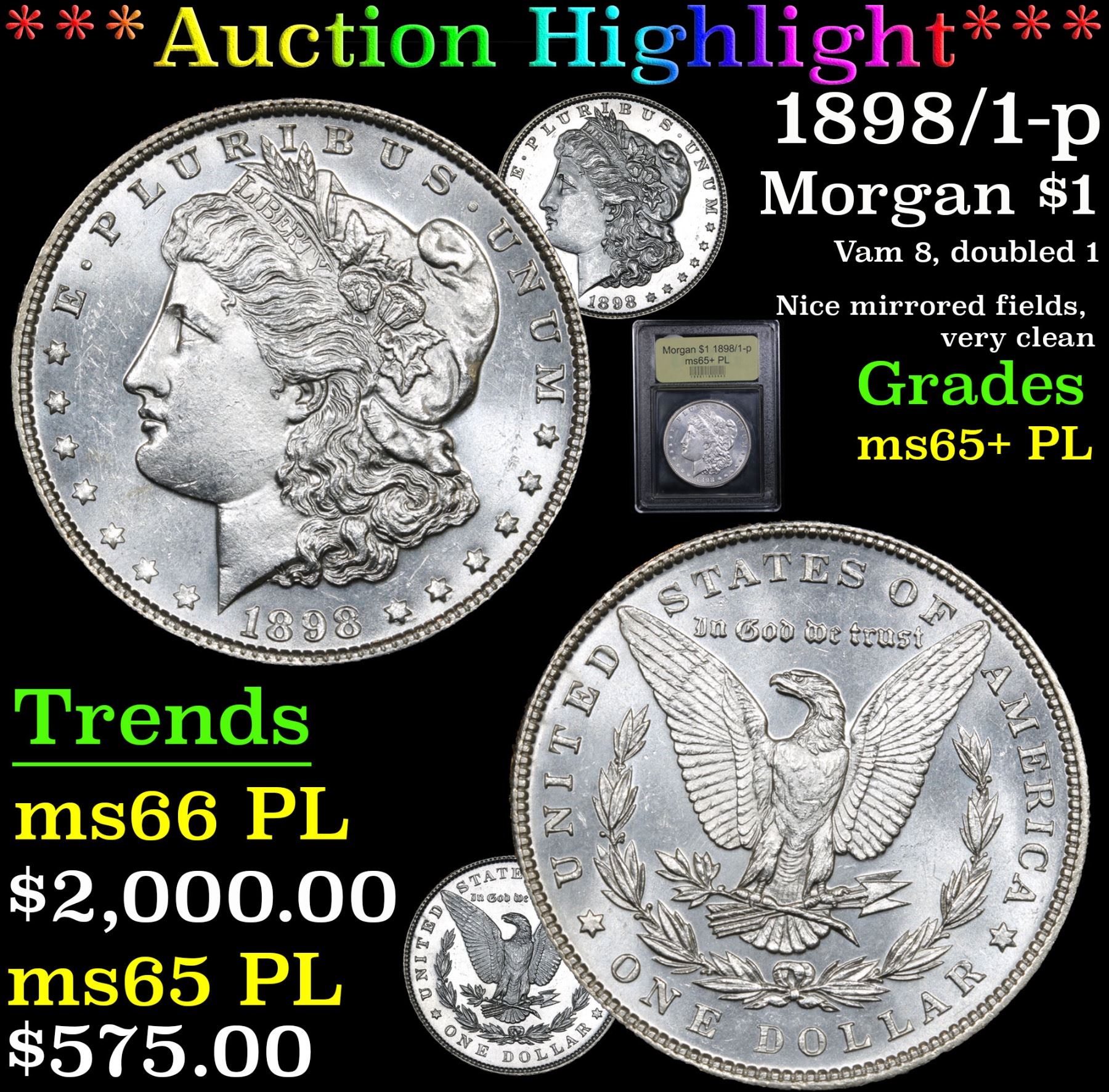 ***Auction Highlight*** 1898/1-p Morgan Dollar $1 Graded GEM+ PL By USCG. Vam 8, doubled 1; Nice mirrored fields, very clean A Corey's Pick, Bid to Win, Don't let it get Away Coin