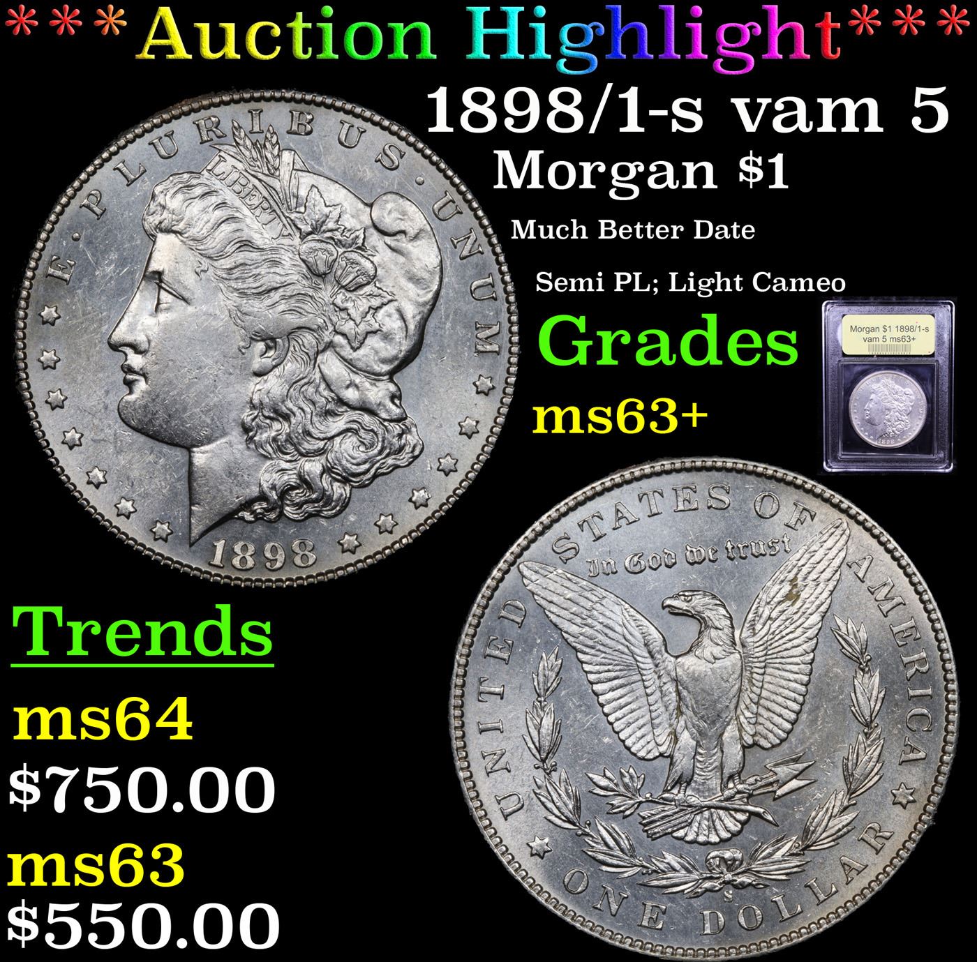 ***Auction Highlight*** 1898/1-s vam 5 Morgan Dollar $1 Graded Select+ Unc By USCG.