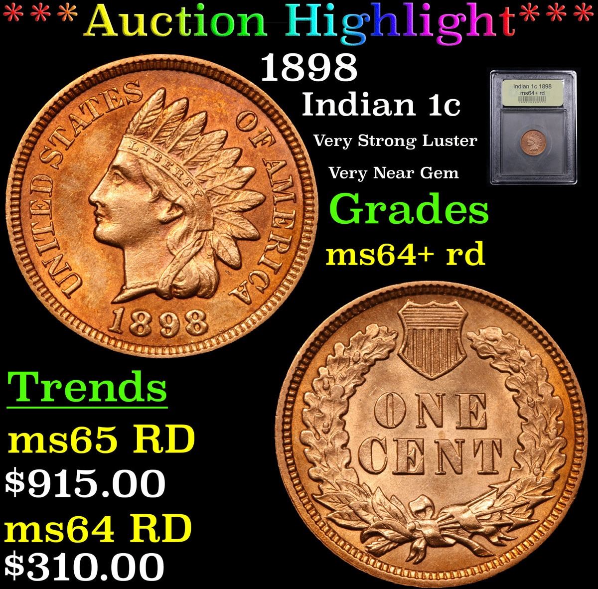***Auction Highlight*** 1898 Indian Cent 1c Graded Choice+ Unc RD By USCG. A Corey's Pick, Bid to Win Coin