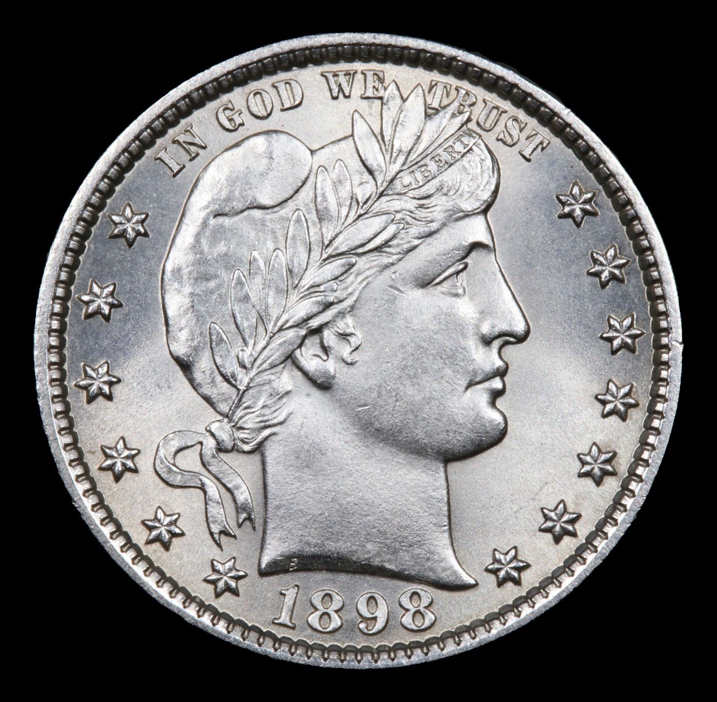 ***Auction Highlight*** 1898-p Barber Quarter 25c Graded GEM++ Unc By USCG. Dazzling cartwheel luster and a razor-sharp strike only begin to describe the assets of this gorgeously unperturbed Superb Gem. Silver grey throughout, this coin looks like it left the mint yesterday. The reverse is an ms68. A Corey's Pick, Bid to Win, Don't let it get Away, you might not find its equal Coin. I give this coin my highest recommendation