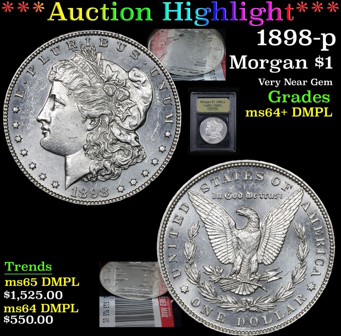 ***Auction Highlight*** 1898-p Morgan Dollar $1 Graded Choice Unc+ DMPL By USCG. Very Near Gem