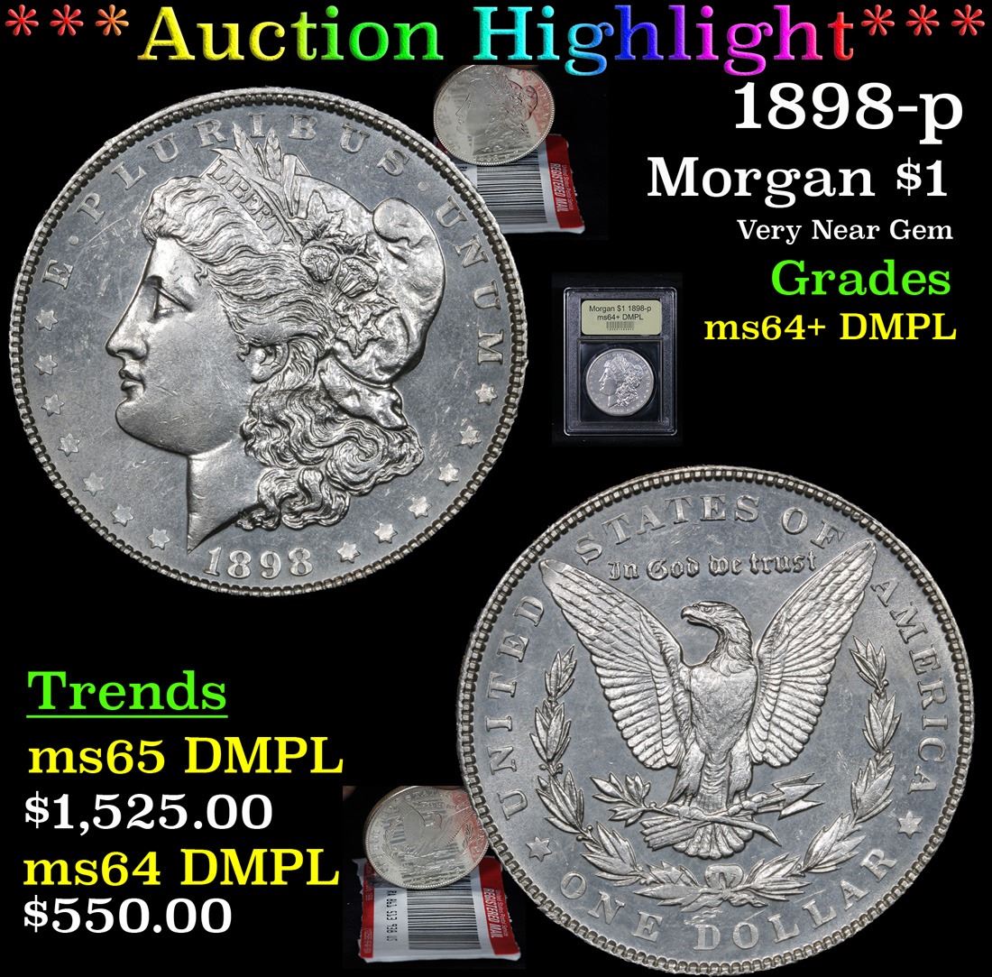***Auction Highlight*** 1898-p . Very Near Gem Morgan Dollar $1 Graded Choice Unc+ DMPL By USCG. A Corey's Pick, Bid to Win, Don't let it get Away Coin