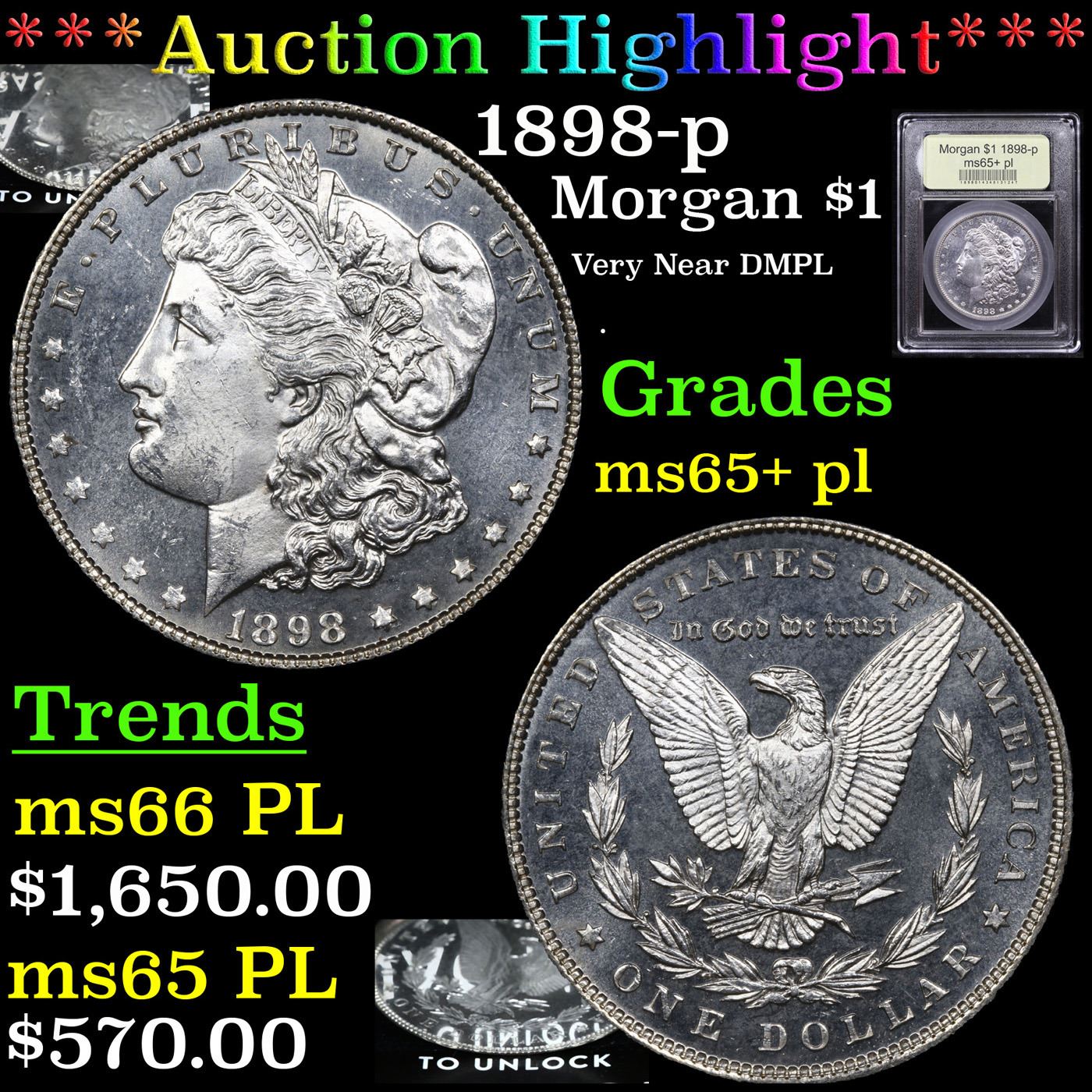 ***Auction Highlight*** 1898-p Morgan Dollar $1 Graded GEM+ PL By USCG.