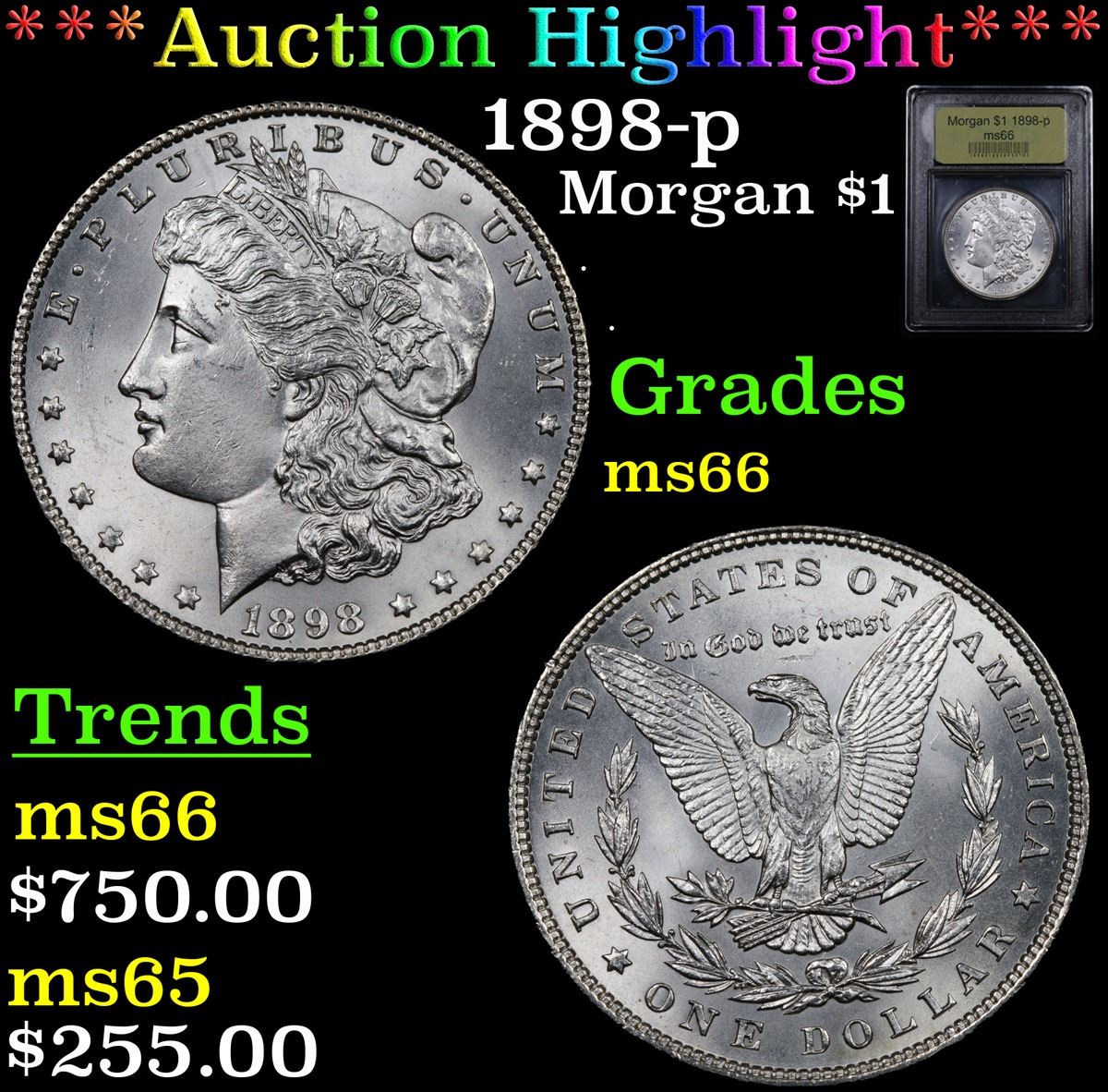 ***Auction Highlight*** 1898-p Morgan Dollar $1 Graded GEM+ Unc BY USCG. A Corey's Pick, Bid to Win Coin