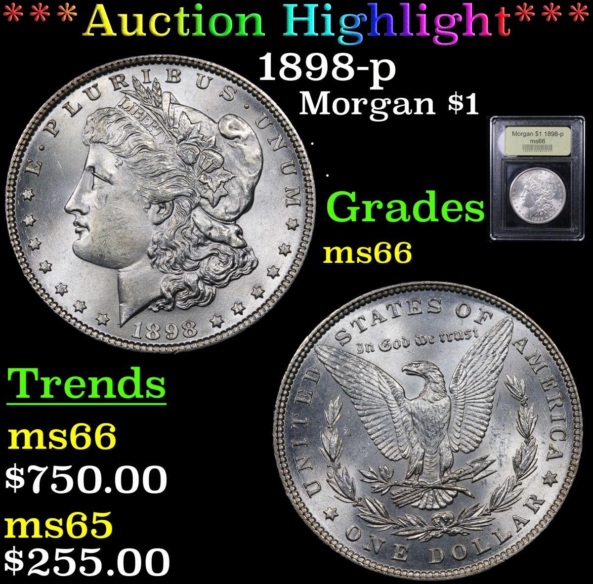 ***Auction Highlight*** 1898-p Morgan Dollar $1 Graded GEM+ Unc By USCG. A Corey's Pick, Bid to Win Coin