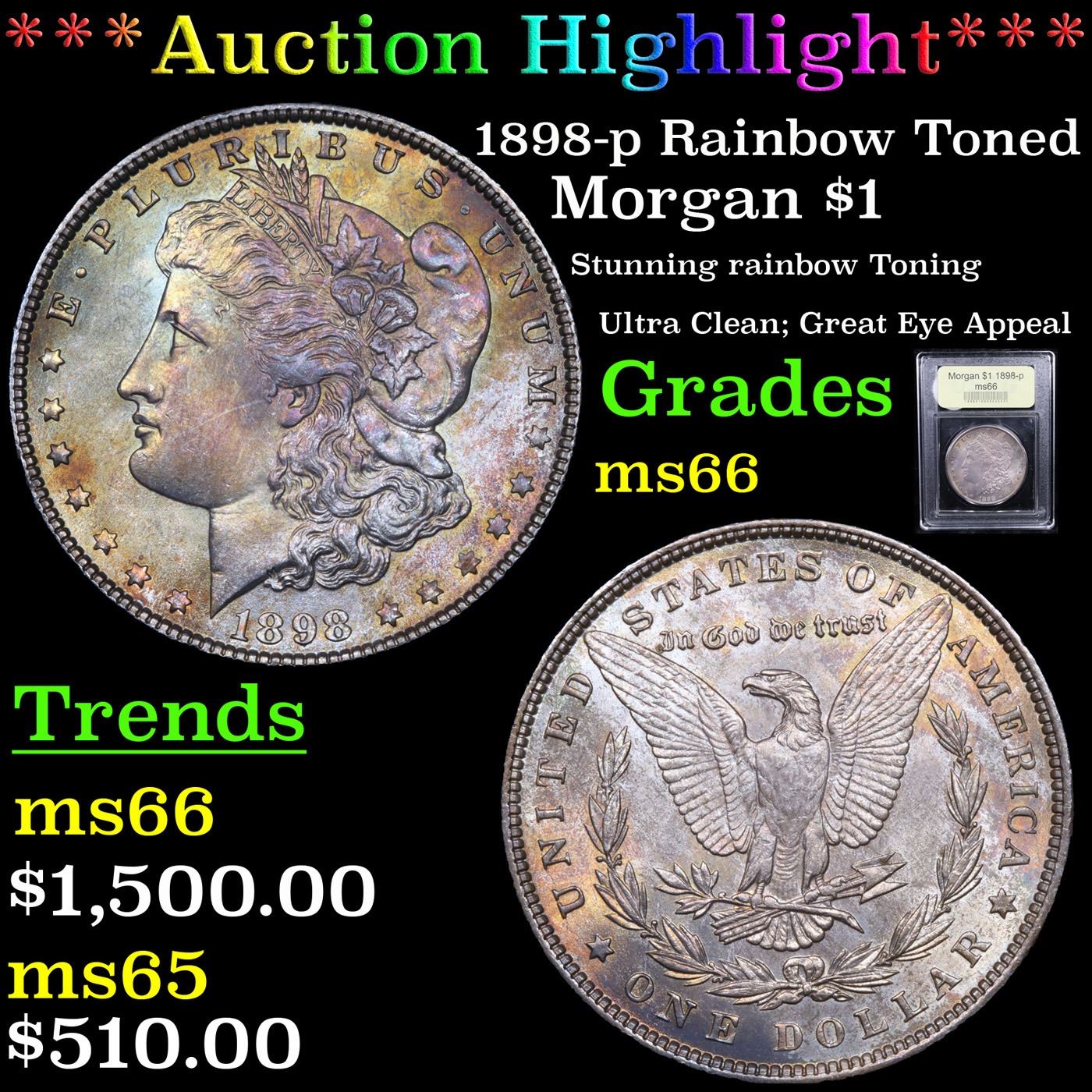 ***Auction Highlight*** 1898-p Rainbow Toned Morgan Dollar $1 Graded GEM+ Unc By USCG. A Corey's Pick, Bid to Win, Don't let it get Away Coin