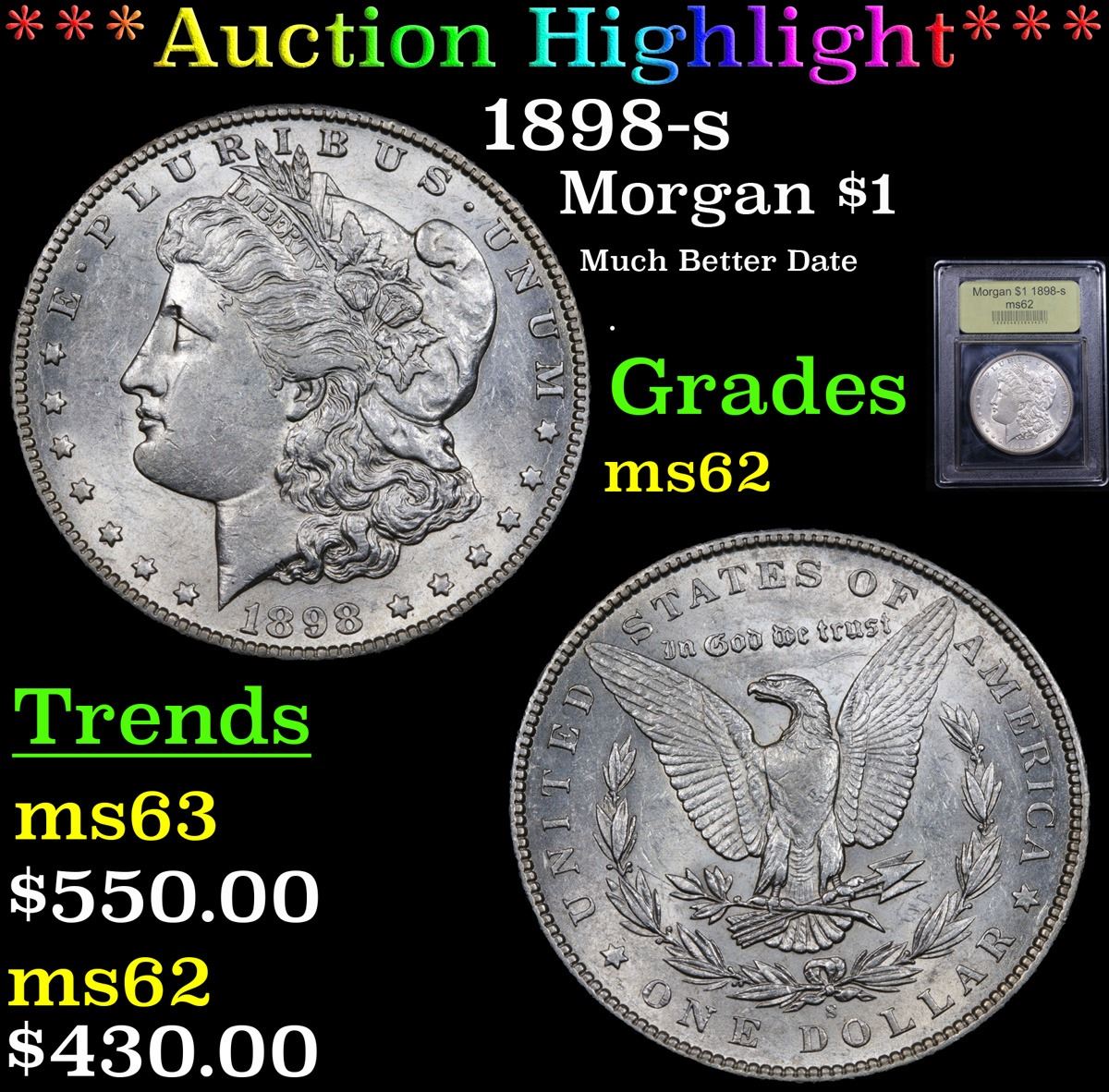 ***Auction Highlight*** 1898-s Morgan Dollar $1 Graded Select Unc By USCG.