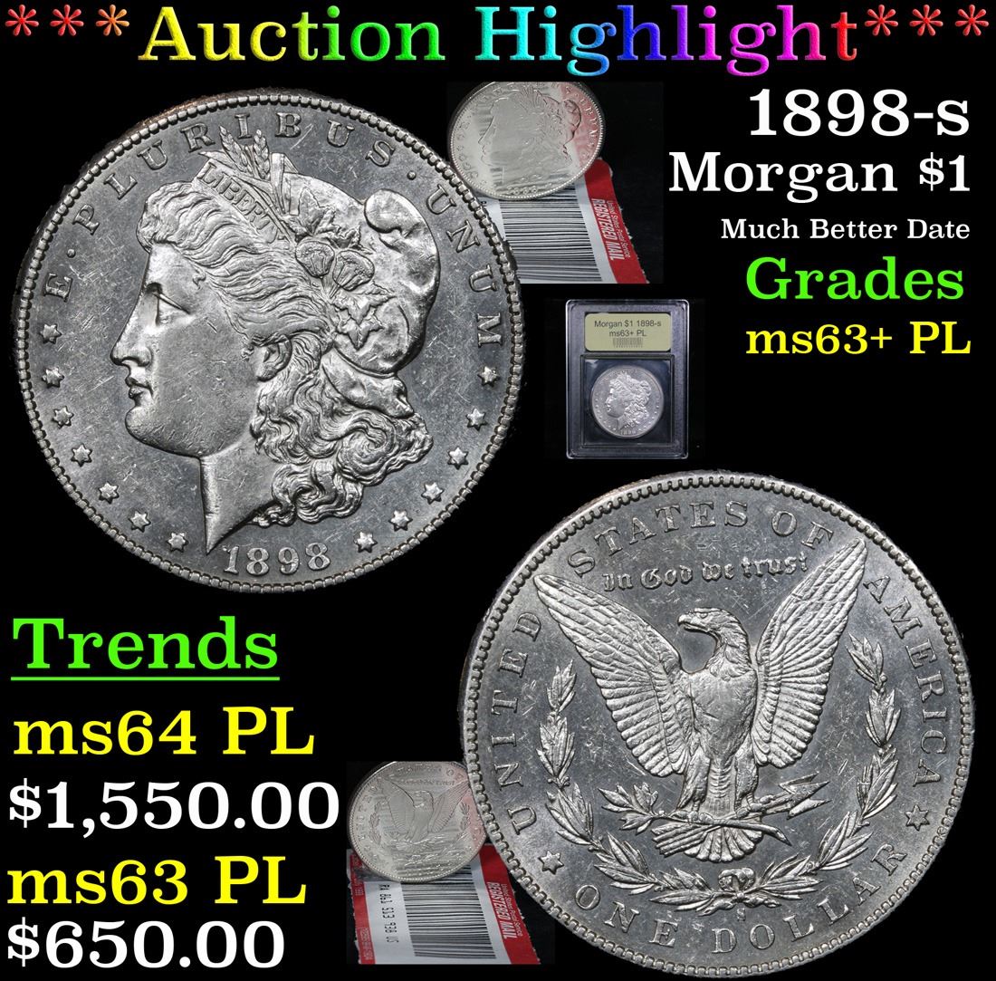 ***Auction Highlight*** 1898-s Much Better Date . Morgan Dollar $1 Graded Select Unc+ PL By USCG.