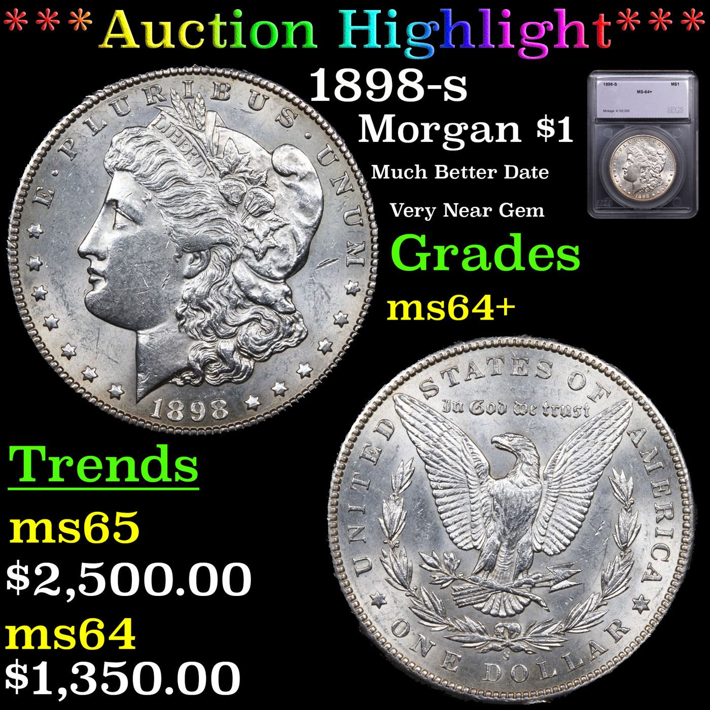 ***Auction Highlight*** 1898-s Morgan Dollar $1 Graded ms64+ BY SEGS.