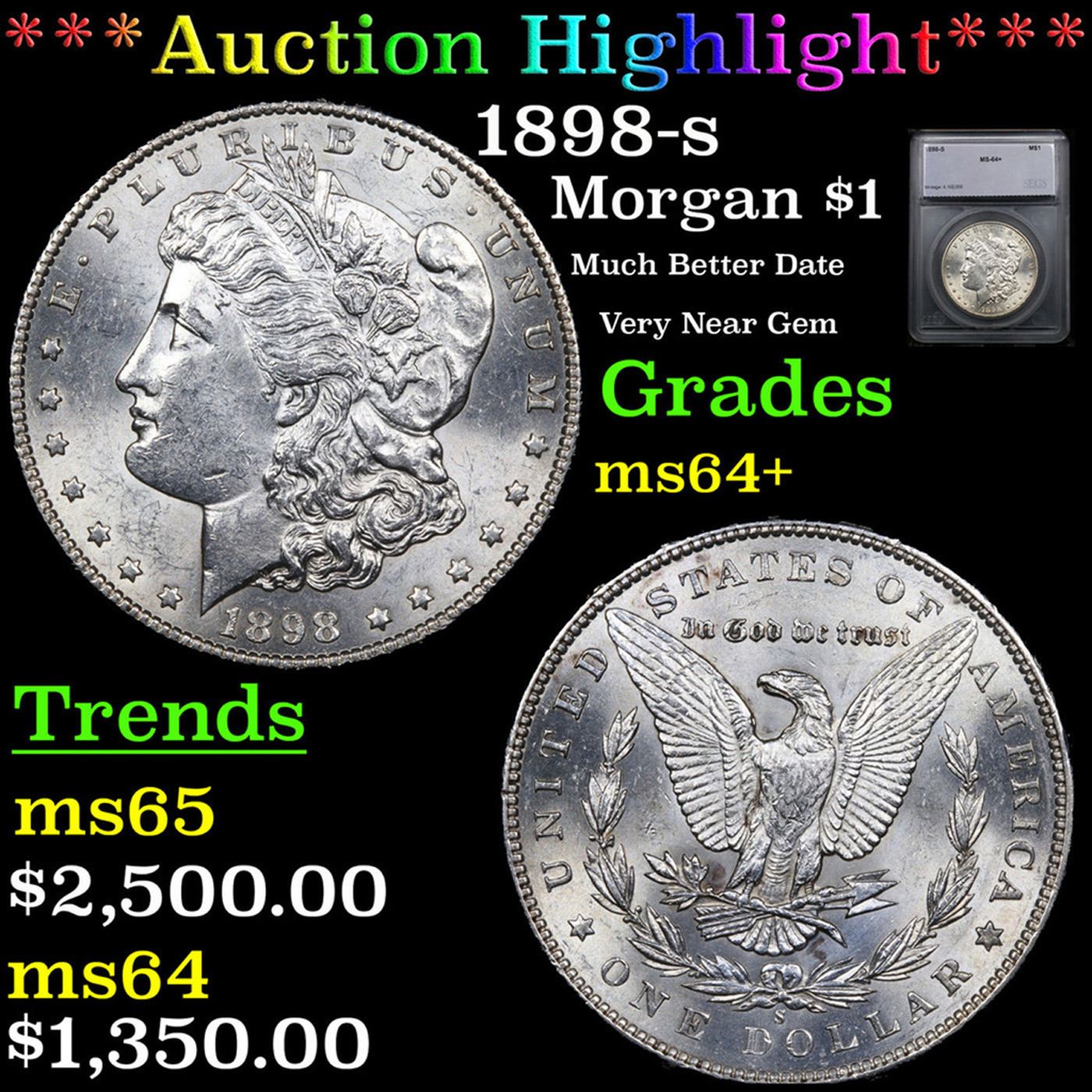 ***Auction Highlight*** 1898-s Morgan Dollar $1 Graded ms64+ By SEGS.