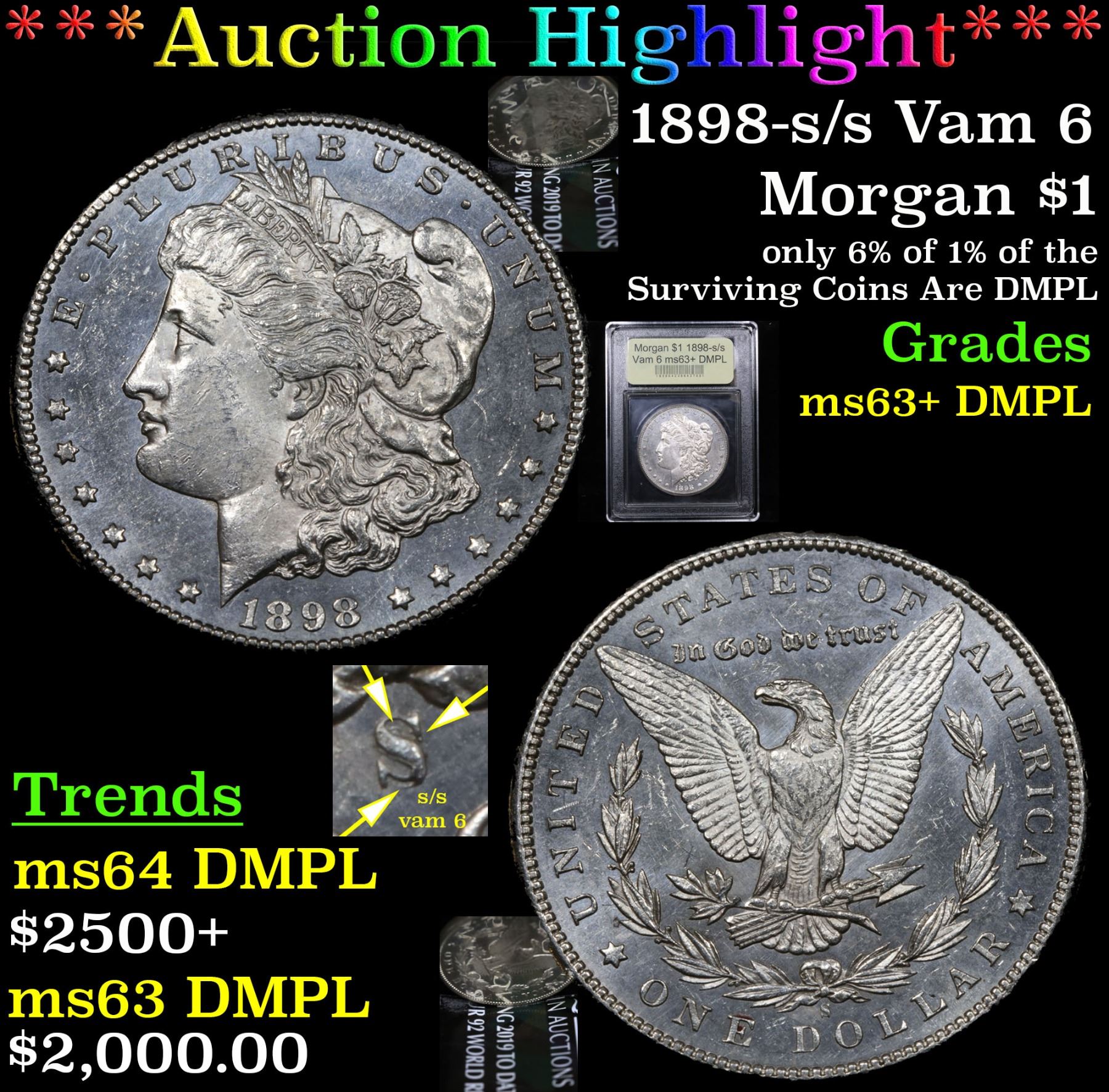 ***Auction Highlight*** 1898-s/s Vam 6 Morgan Dollar $1 Graded Select Unc+ DMPL By USCG (fc)