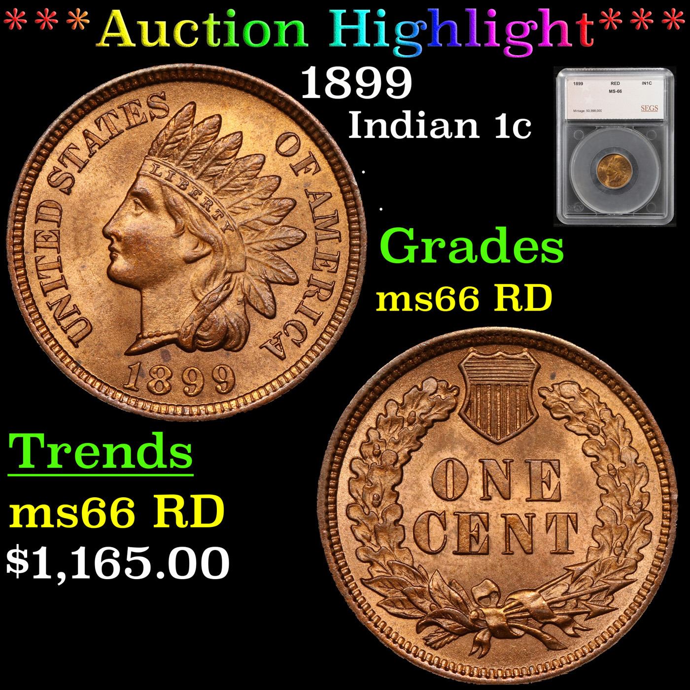 ***Auction Highlight*** 1899 Indian Cent 1c Graded ms66 RD by SEGS.