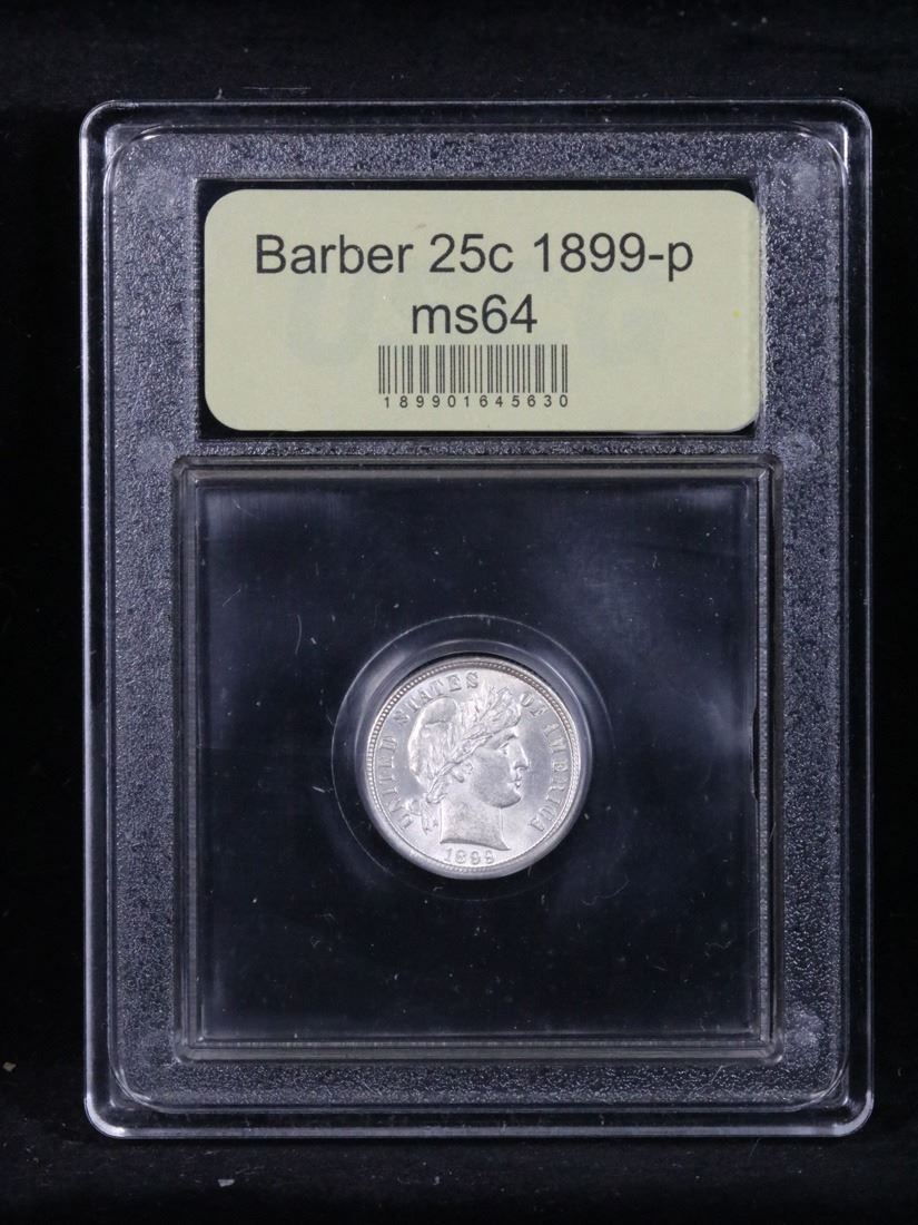 ***Auction Highlight*** 1899-p . . Barber Quarter 25c Graded Choice Unc By USCG. PCGS estimates that of the original 12 Million minted only 15,000 survive and of that only 100 at ms65 or above survive. PCGS has only graded 12 at ms66 and only 1 at ms67 EVER. A Corey's Pick, Bid to Win, Don't let it get Away Coin