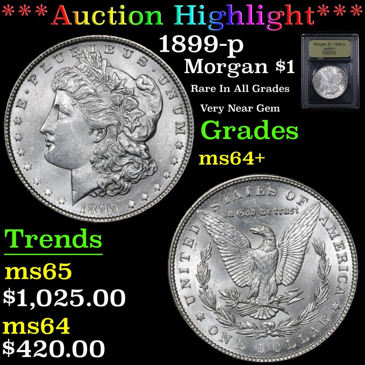 ***Auction Highlight*** 1899-p Rare In All Grades Very Near Gem Morgan Dollar $1 Graded Choice+ Unc By USCG. A Corey's Pick, Bid to Win Coin