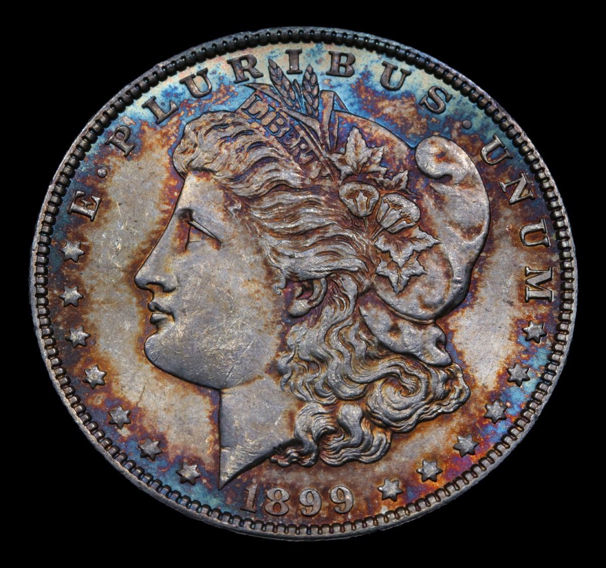 ***Auction Highlight*** 1899-p Rainbow Toned Morgan Dollar $1 Graded GEM+ Unc By USCG (fc)