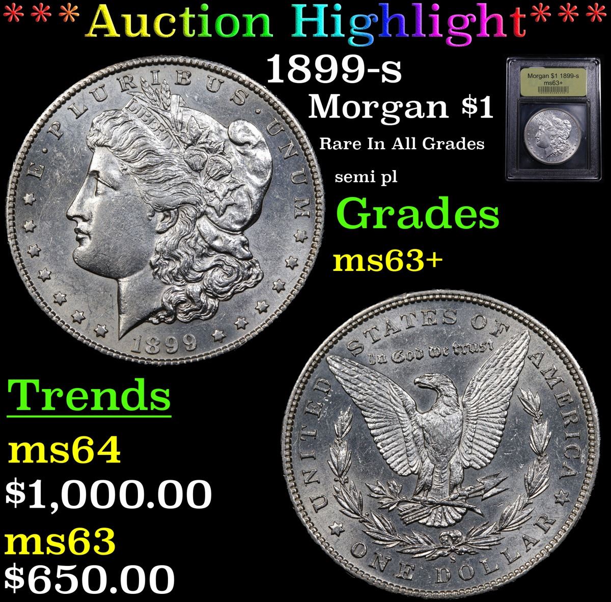 ***Auction Highlight*** 1899-s Morgan Dollar $1 Graded Select+ Unc By USCG. A Corey's Pick, Bid to Win Coin