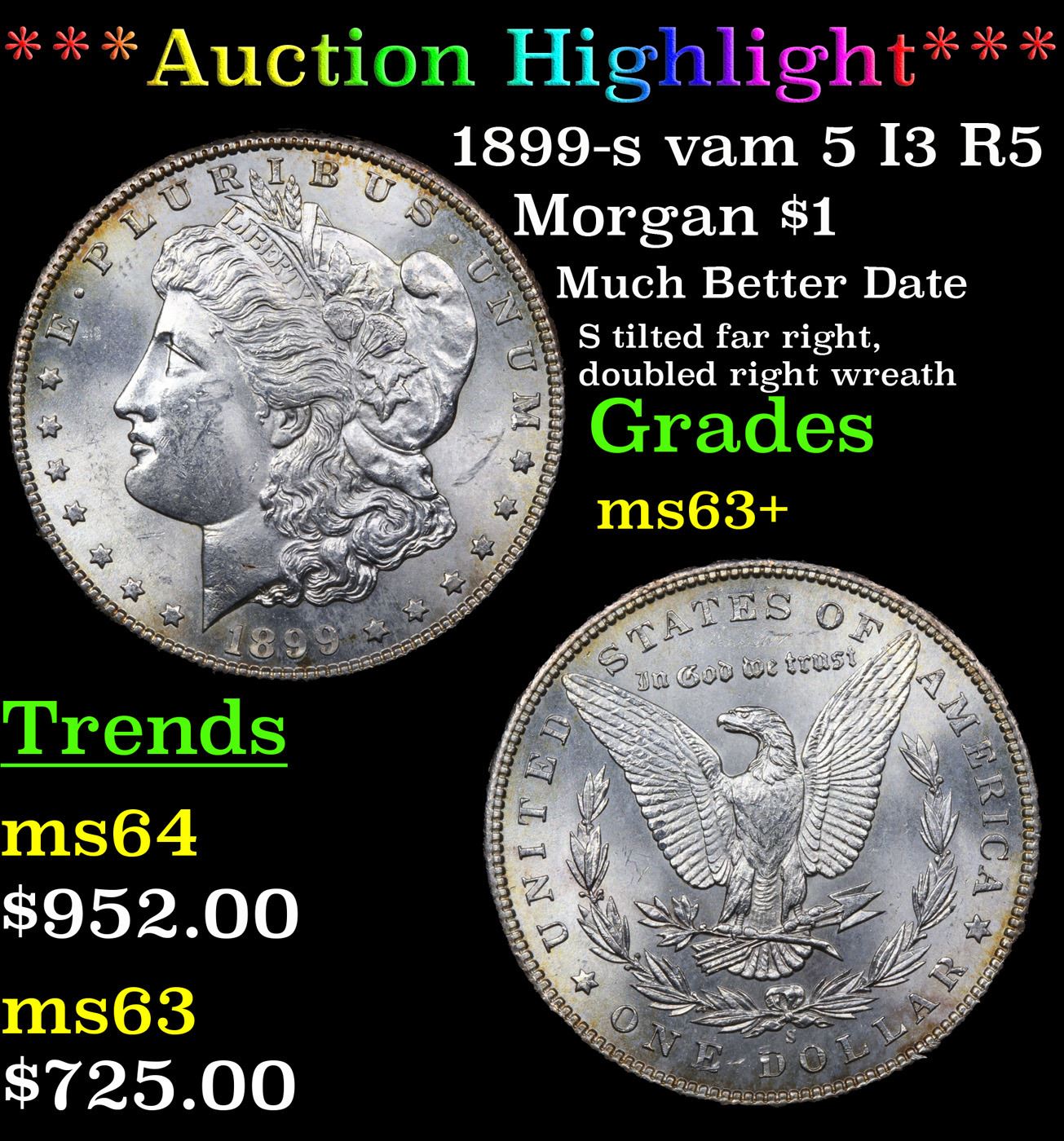 ***Auction Highlight***1899-s vam 5 I3 R5 Morgan Dollar $1 Graded ms63+