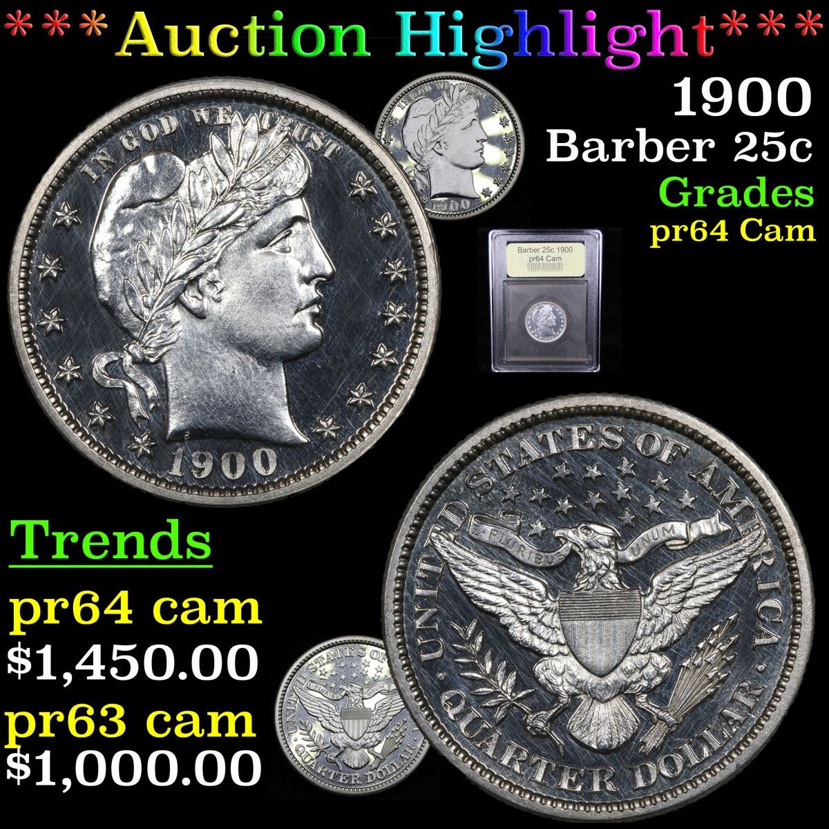 ***Auction Highlight*** 1900 . . Barber Quarter 25c Graded Choice Proof Cameo By USCG. A Corey's Pick, Bid to Win Coin