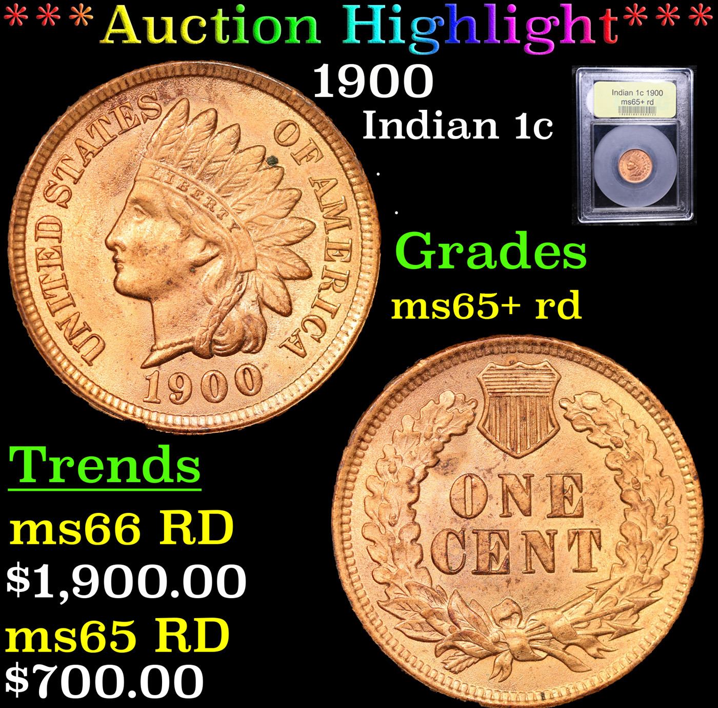 ***Auction Highlight*** 1900 Indian Cent 1c Graded Gem+ Unc RD By USCG.