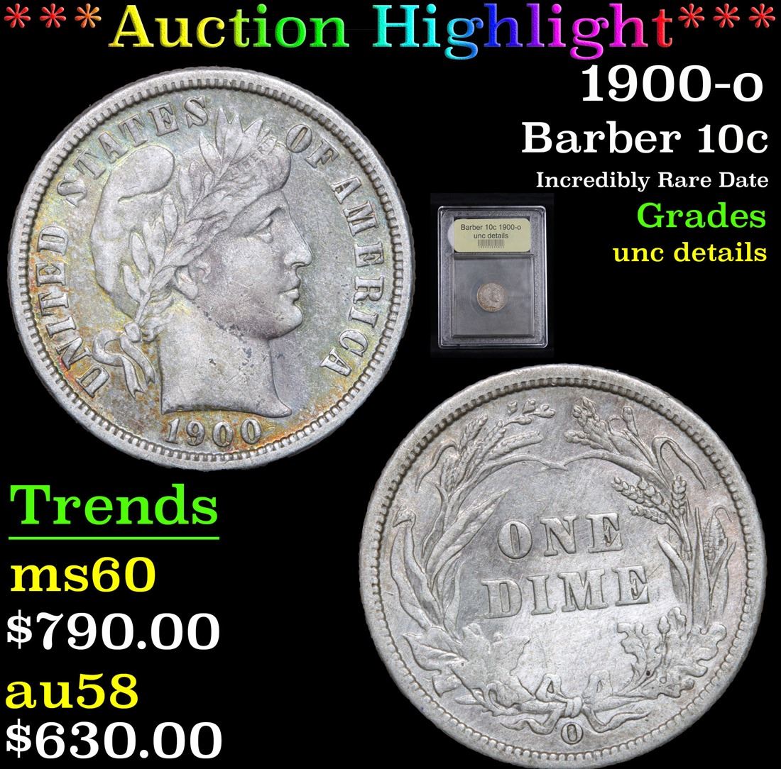 ***Auction Highlight*** 1900-o Barber Dime 10c Graded Unc Details By USCG. Incredibly Rare Date A Corey's Pick