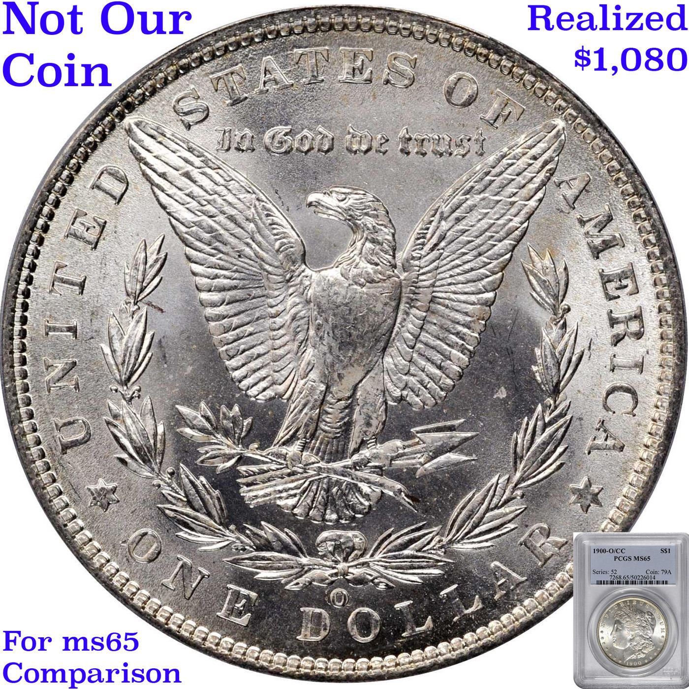 ***Auction Highlight*** 1900-o/cc Top 100 vam 11 I4 R4 Morgan Dollar $1 Graded ms65 By SEGS. A generally brilliant example that is sharply struck with full, frosty mint luster. This popular variety was created when several leftover dies that had originally been earmarked for the Carson City Mint were retacked for use at the New Orleans Mint. These dies were returned to the Philadelphia Mint after July 1, 1899, when it became clear that coinage would not resume at Carson City. Once back in the hands of the engraving department, the CC mintmark was partially effaced from each die and overpunched with an O mintmark. Upon their arrival at the New Orleans Mint, these over mintmark dies were used to strike some of the 12,590,000-piece mintage for the 1900-O. Eagerly sought in all grades, the 1900-O/CC is scarce in Gem Mint State and always in demand among advanced specialists. A Corey's Pick, Bid to Win, Don't let it get Away Coin