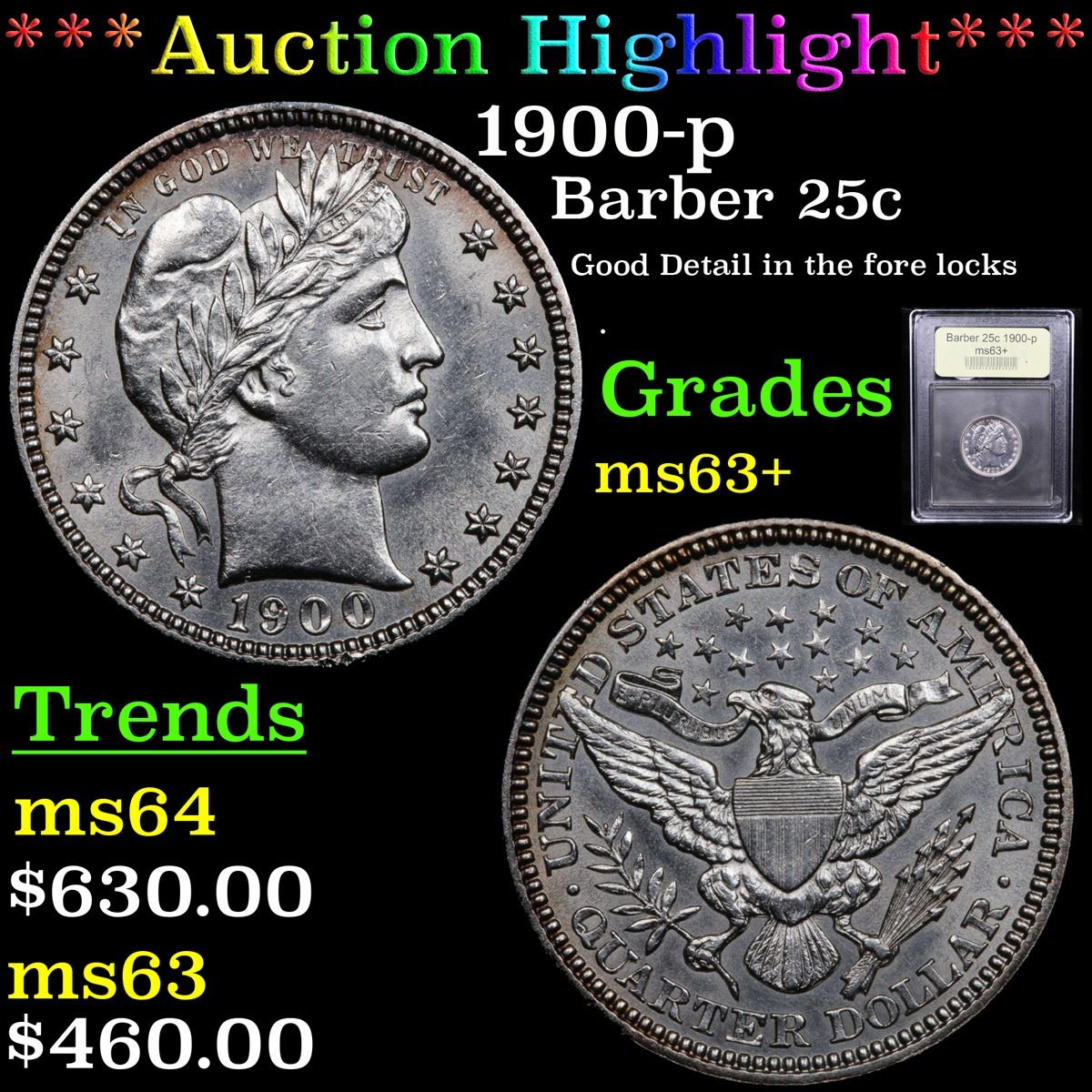 ***Auction Highlight*** 1900-p Barber Quarter 25c Graded Select+ Unc By USCG. A Corey's Pick, Bid to Win Coin