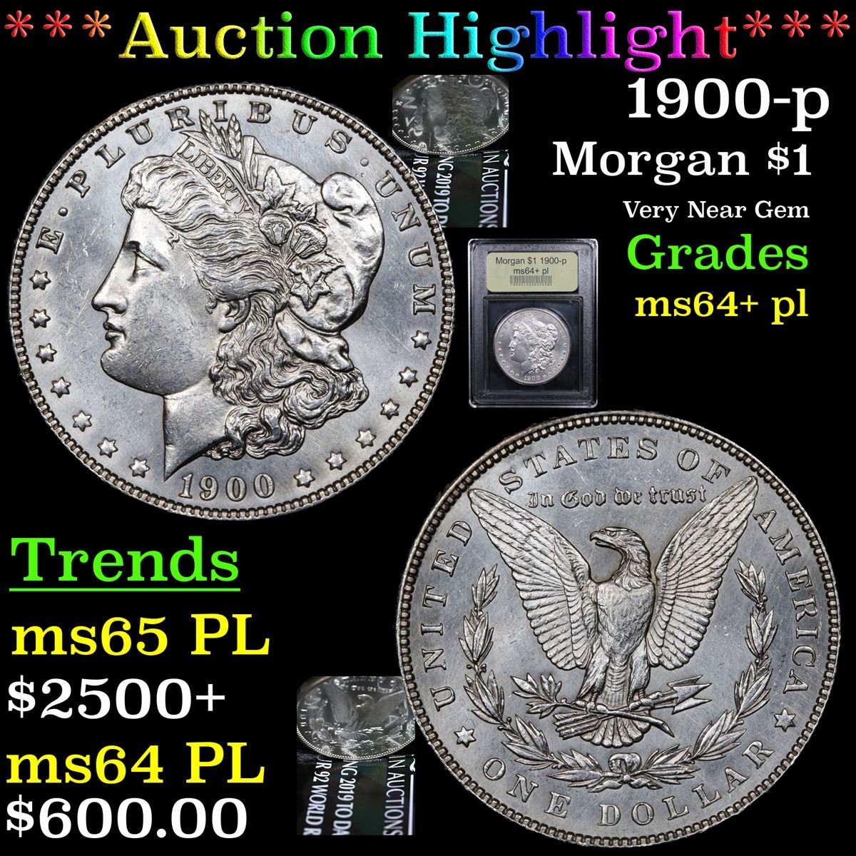 ***Auction Highlight*** 1900-p . Very Near Gem Morgan Dollar $1 Graded Choice Unc+ PL By USCG. A Corey's Pick, Bid to Win, Don't let it get Away, you might not find its equal Coin