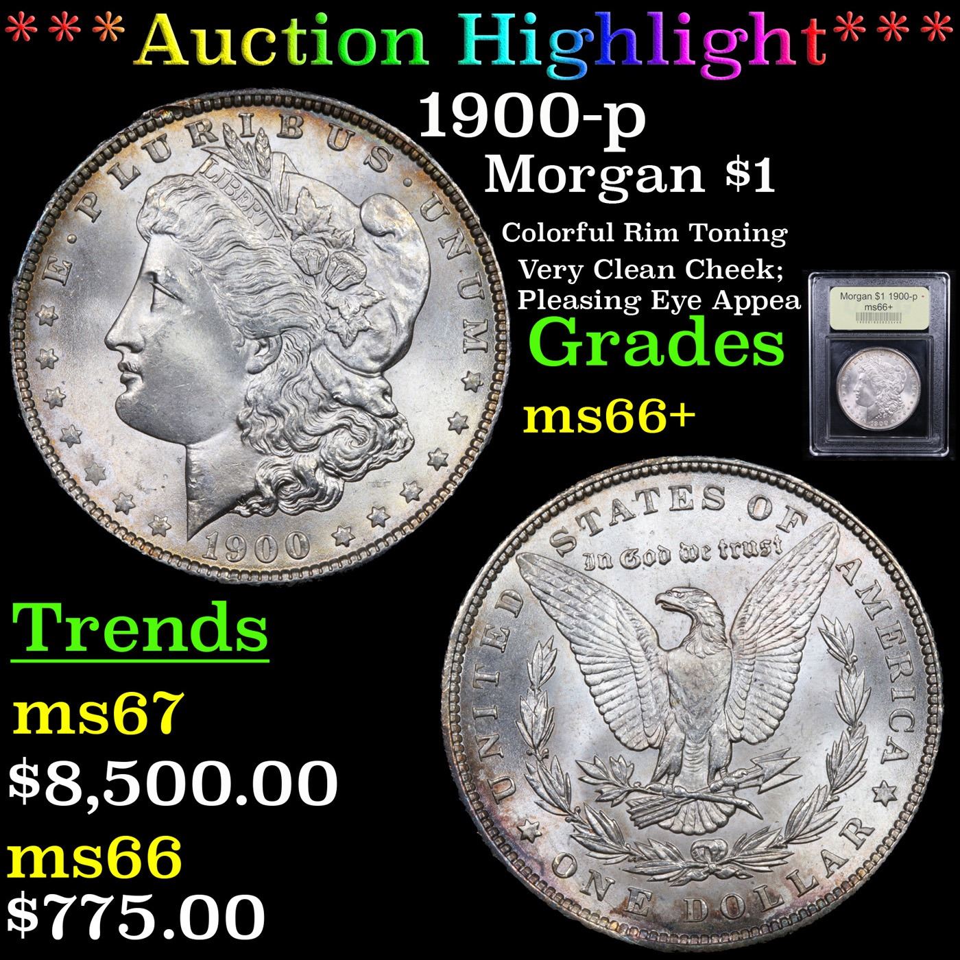 ***Auction Highlight*** 1900-p Morgan Dollar $1 Graded GEM++ Unc By USCG. On this especially nice 1900 dollar, delicate silver iridescence yields to brilliance at most viewing angles. With a razor sharp strike and vibrant satin luster, this Gem is sure to please. A Corey's Pick, Bid to Win, Don't let it get Away, you might not find its equal Coin. I give this coin my highest recommendation