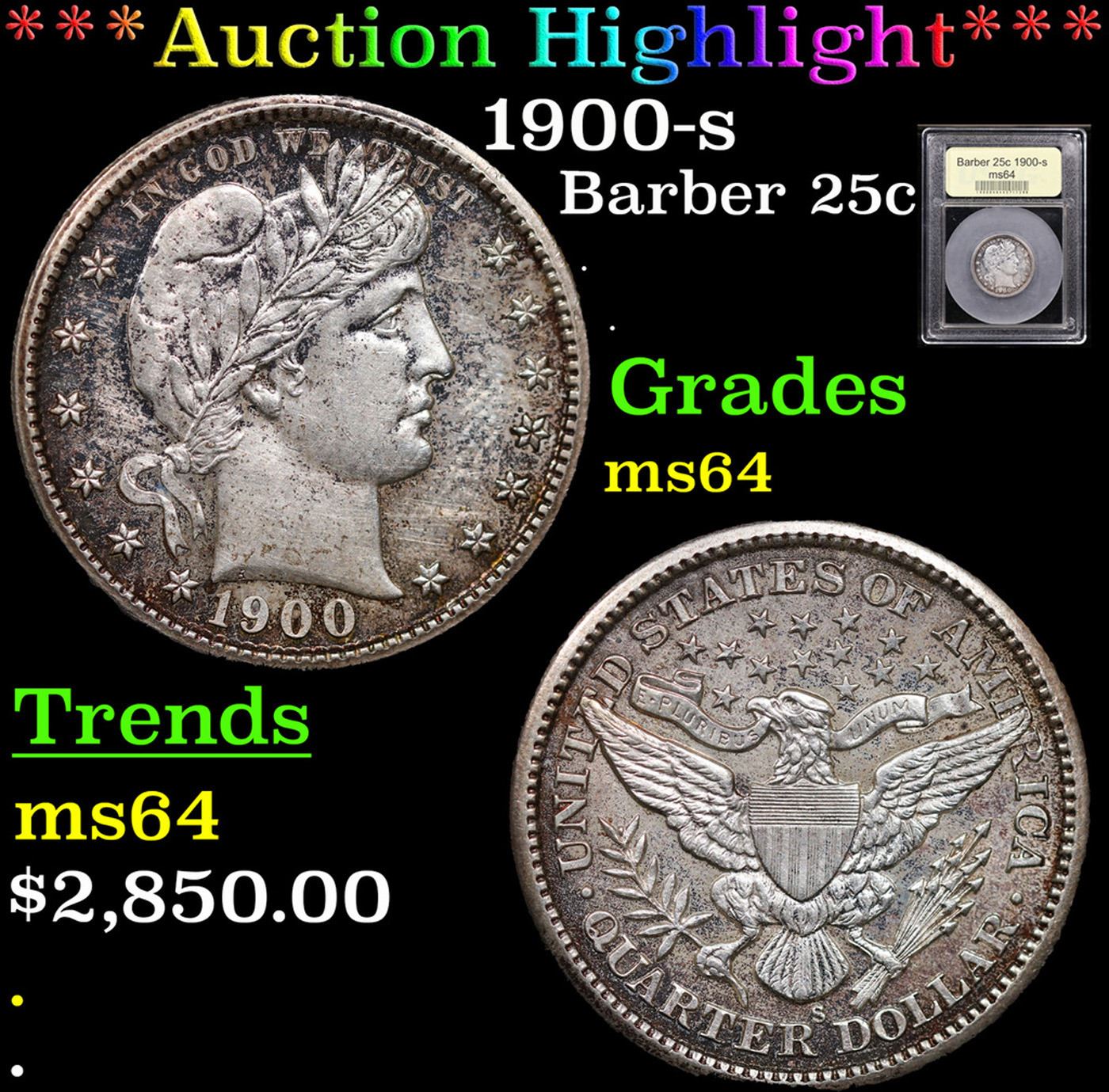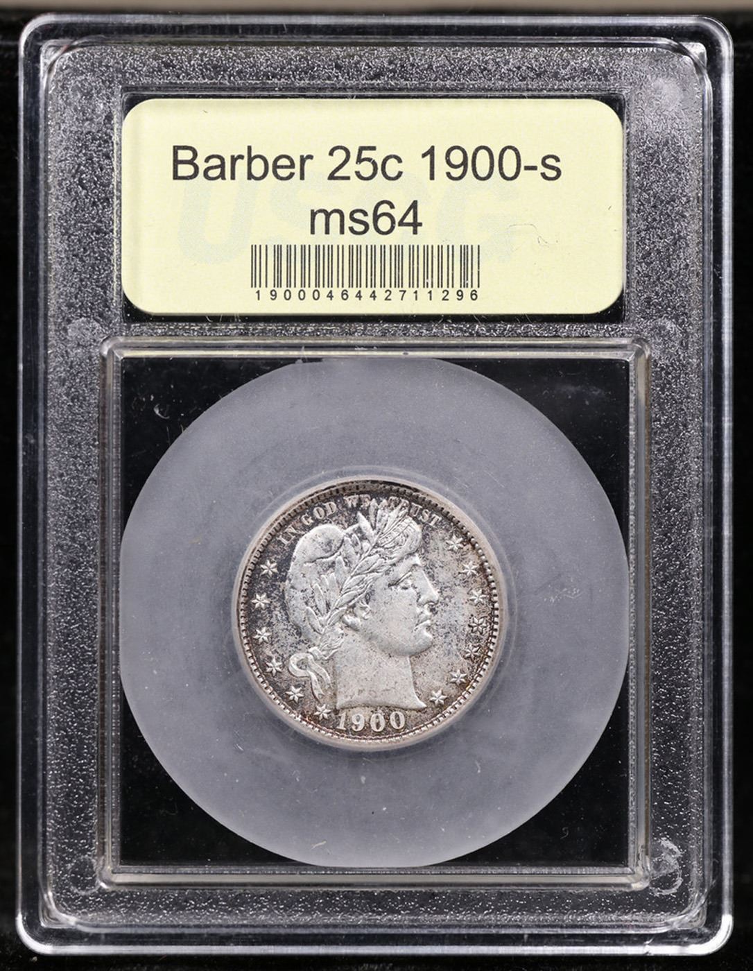 ***Auction Highlight*** 1900-s Barber Quarter 25c Graded Choice Unc By USCG. A better date.