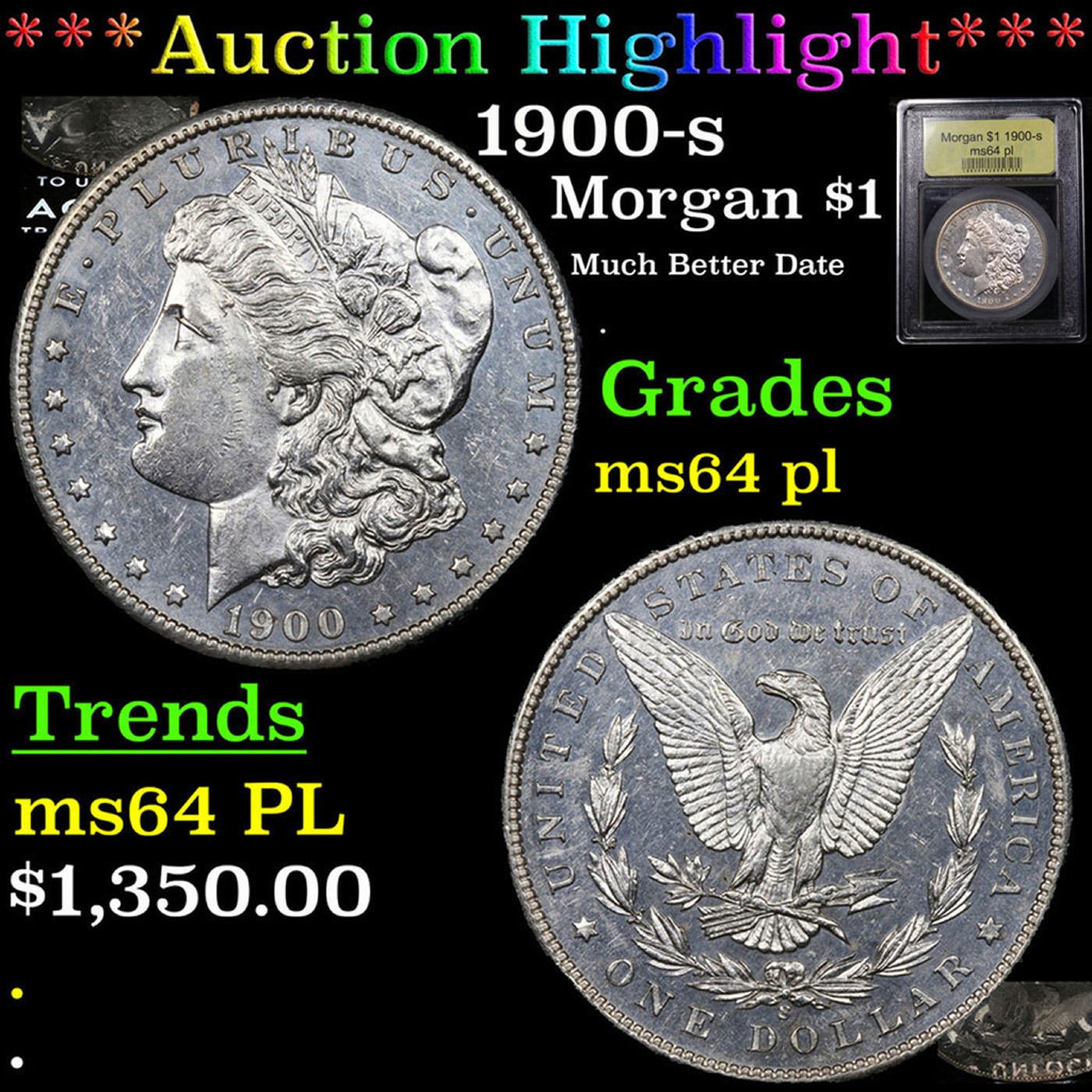 ***Auction Highlight*** 1900-s Morgan Dollar $1 Graded Choice Unc PL By USCG. A Key Date's Pick, Bid to Win Coin