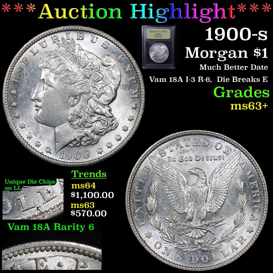 ***Auction Highlight*** 1900-s Much Better Date Vam 18A I-3 R-6, Die Breaks E Morgan Dollar $1 Graded Select+ Unc By USCG.